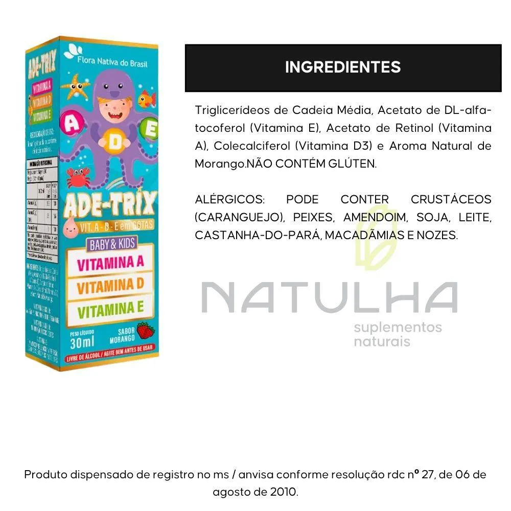 O que é e para que serve o Ade-Trix ( Vitaminas A, D E E) 30Ml - Flora Nativa Morango?