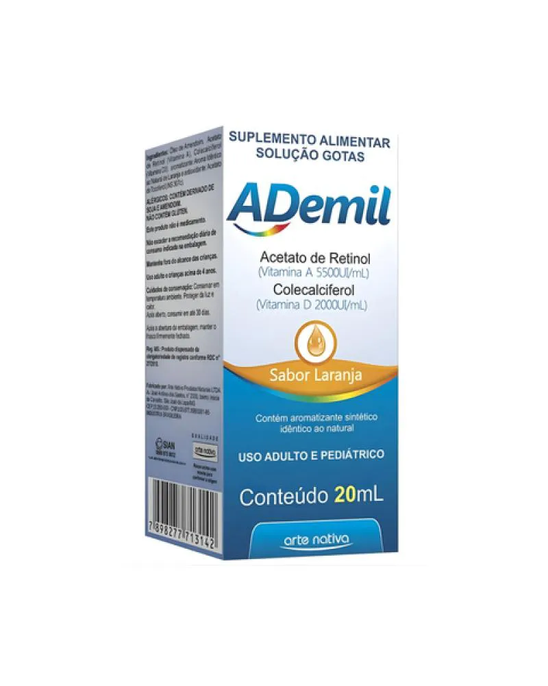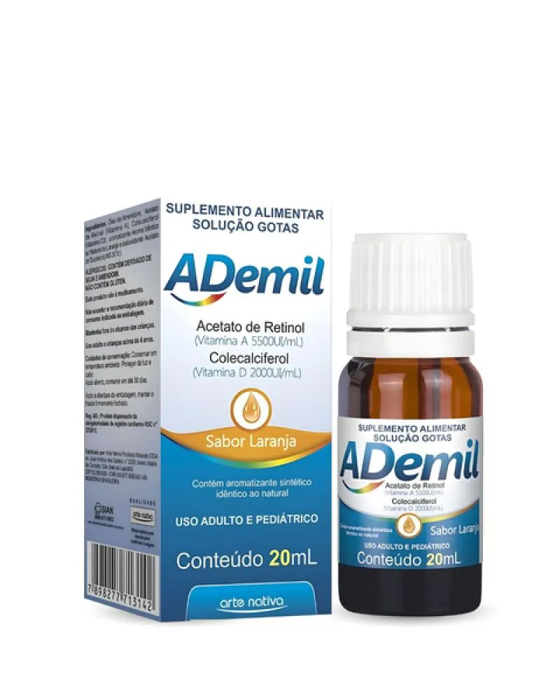 Ademil Arte Nativa é um suplemento alimentar rico em vitaminas A e D3.