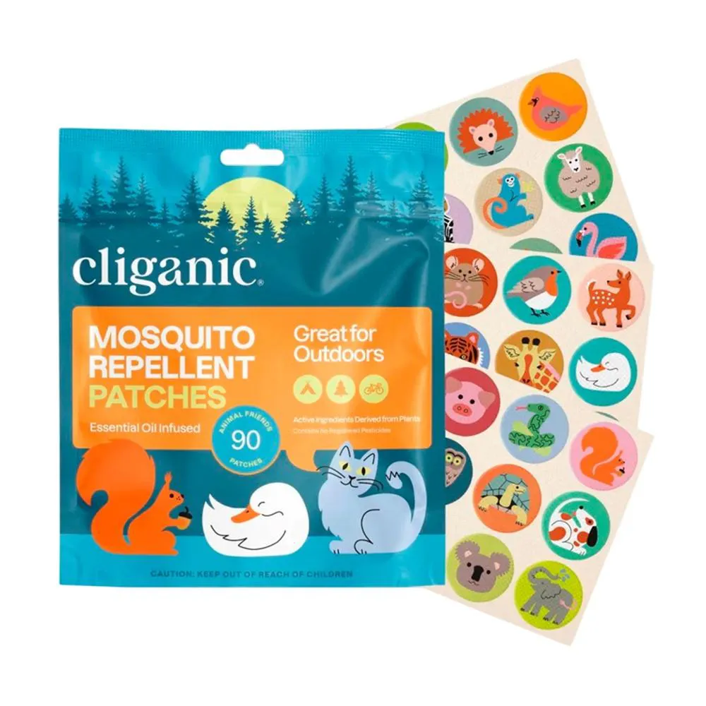 Os adesivos repelentes Cliganic Kids são formulados com ingredientes ativos derivados de plantas e óleos essenciais, oferecendo uma barreira eficaz contra mosquitos sem o uso de DEET, proporcionando segurança para crianças e adultos. 2. Design Divertido e Atraente