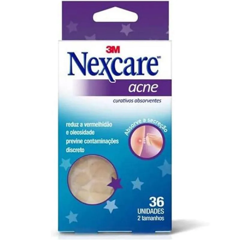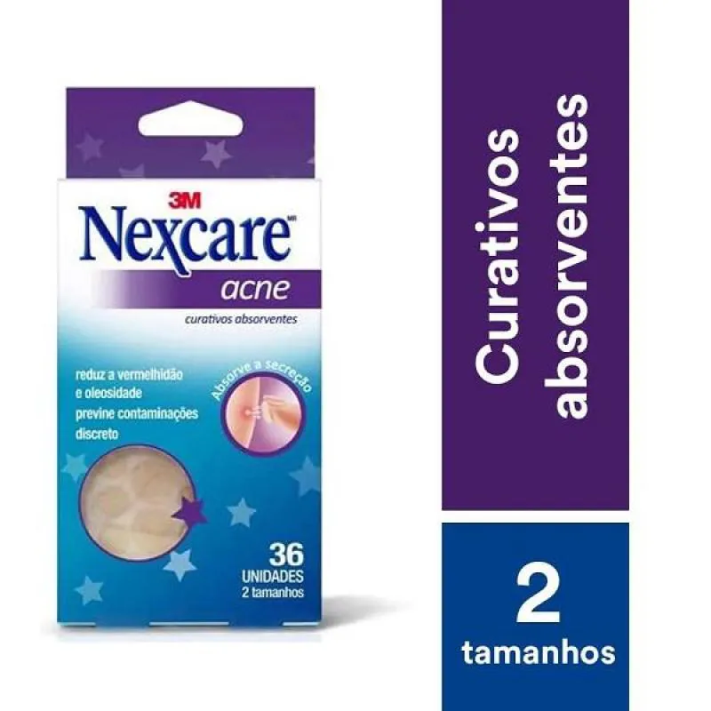 Os curativos absorventes para Acne Nexcare funcionam como uma esponja para absorver a secreção e a oleosidade de espinhas.
