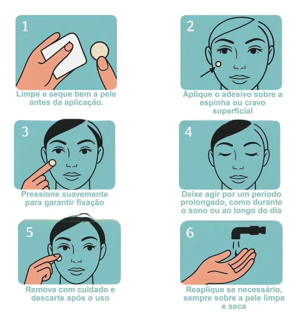 Uso prático: pode ser aplicado durante o dia ou à noite, permanecendo fixo por várias horas.
