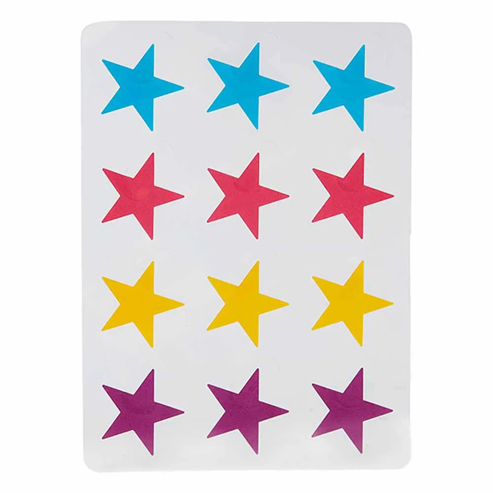 Cada embalagem contém uma cartela com 12 adesivos com 4 cores super estilosas - azul, amarelo, rosa e roxo - para combinar com todas as ocasiões.