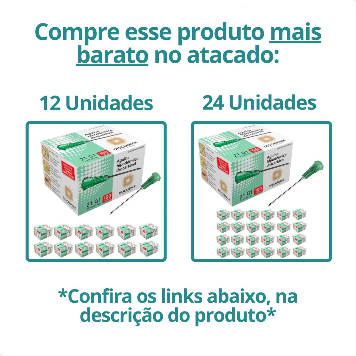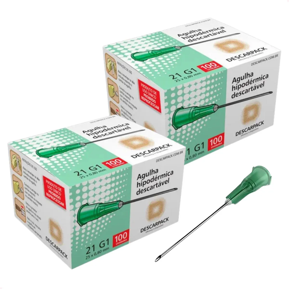 Agulha Hipodérmica Descarpack Descartável 30 x 0,80 21G com 200 Unidades