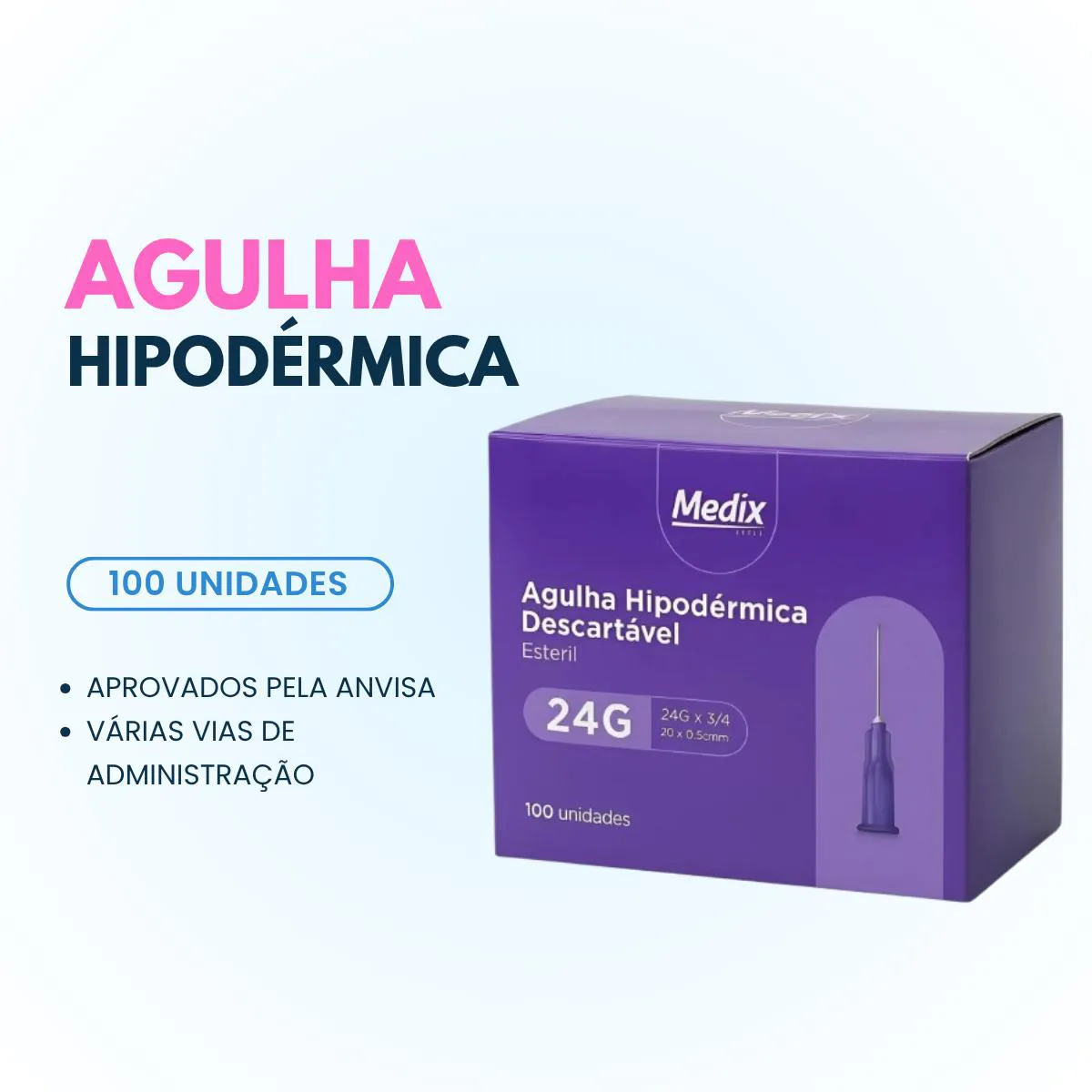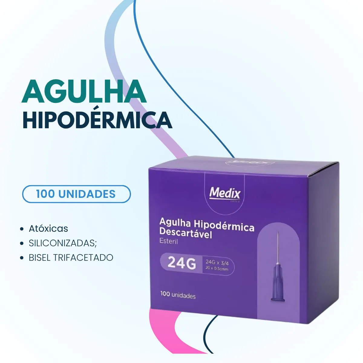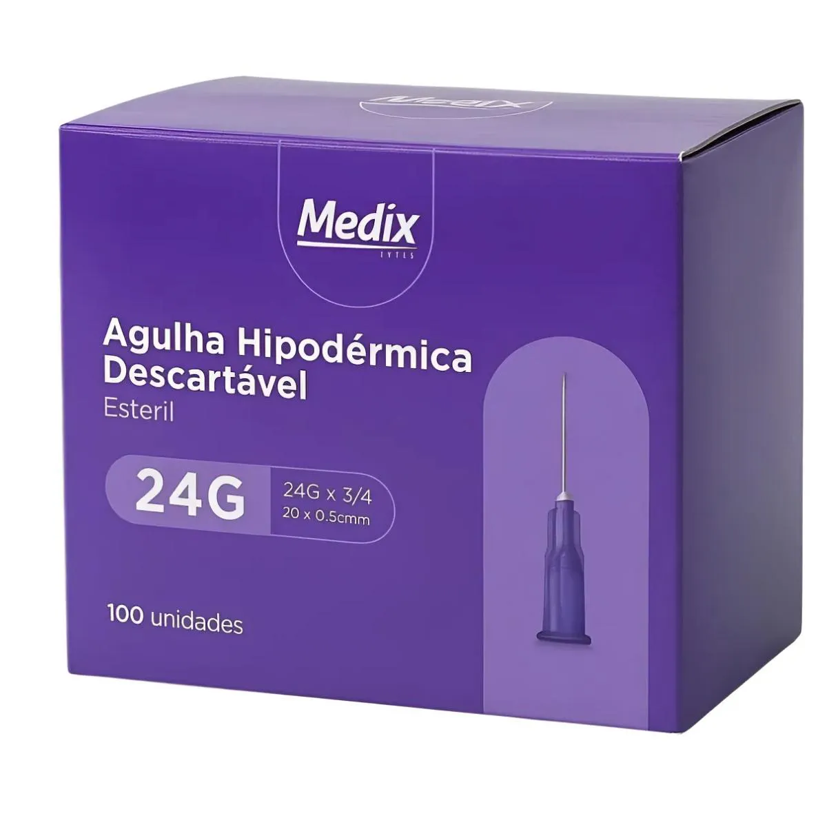 Agulha Hipodérmica Descartável 20Mm X 0,55Mm- Medix 100 Un - 24 Ml