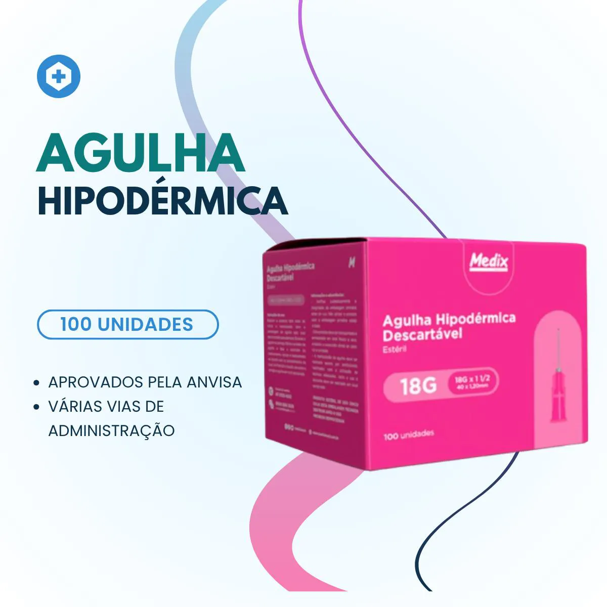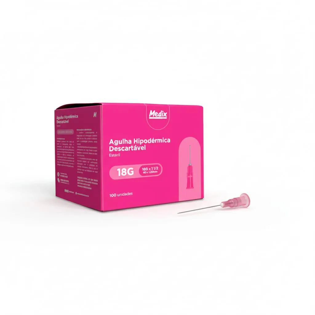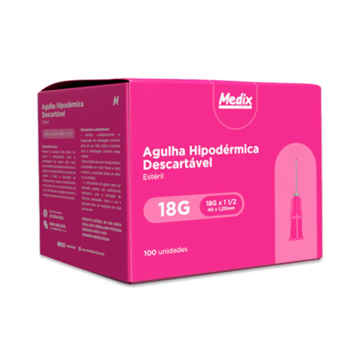 Agulha Hipodérmica Descartável 40Mm X 1,2Mm - Medix 100 Un