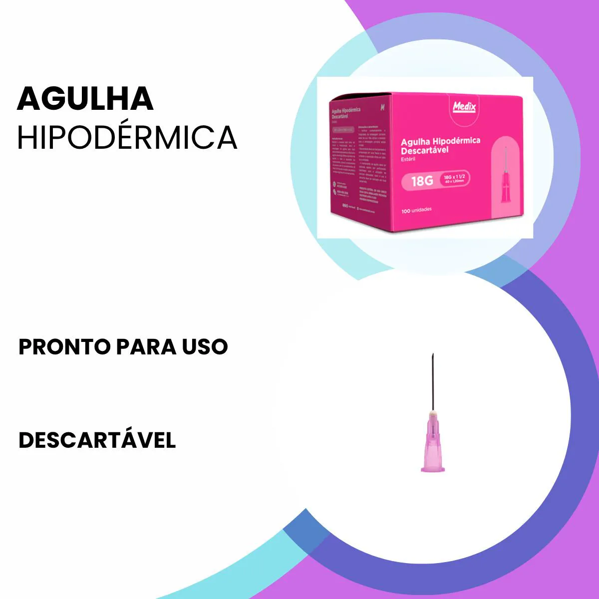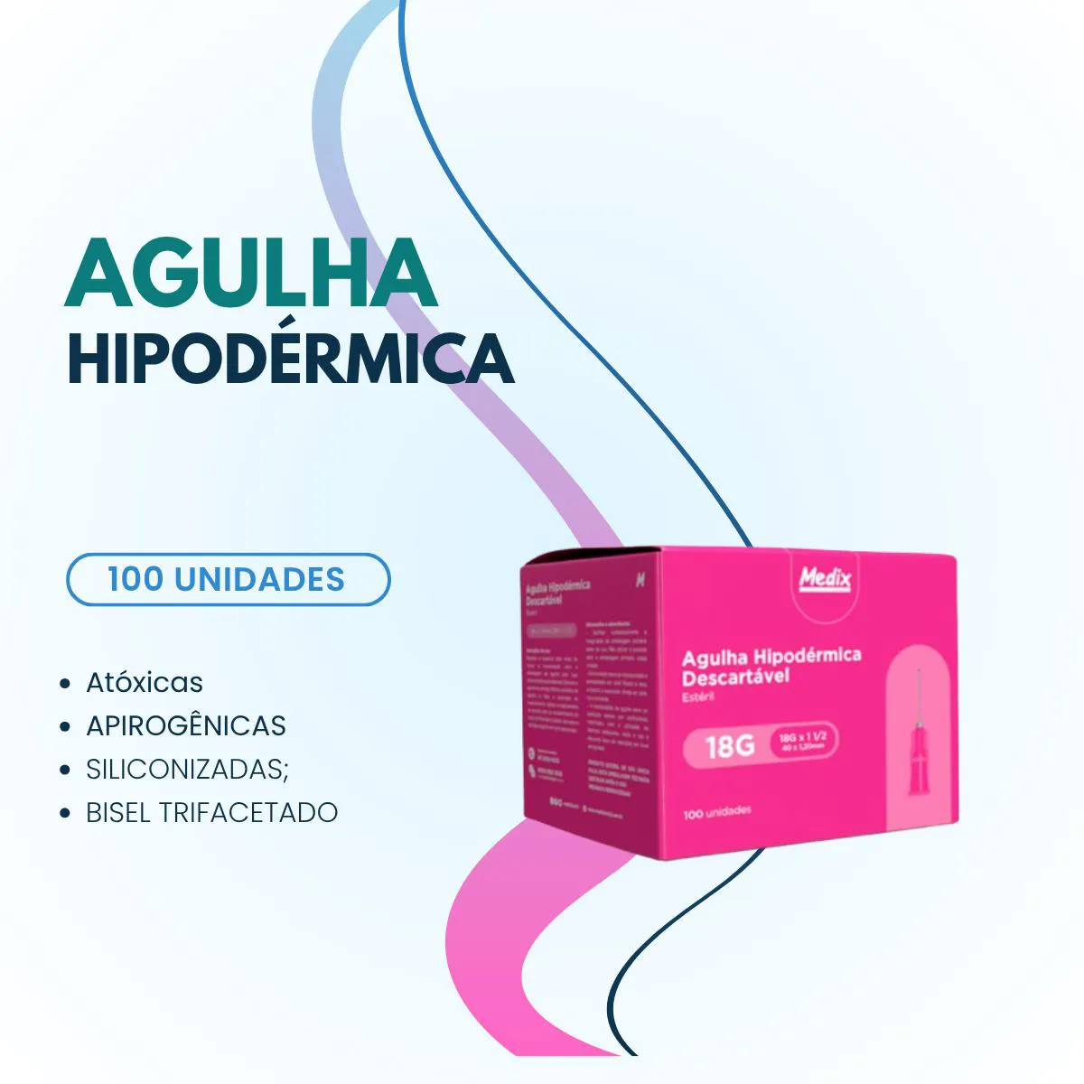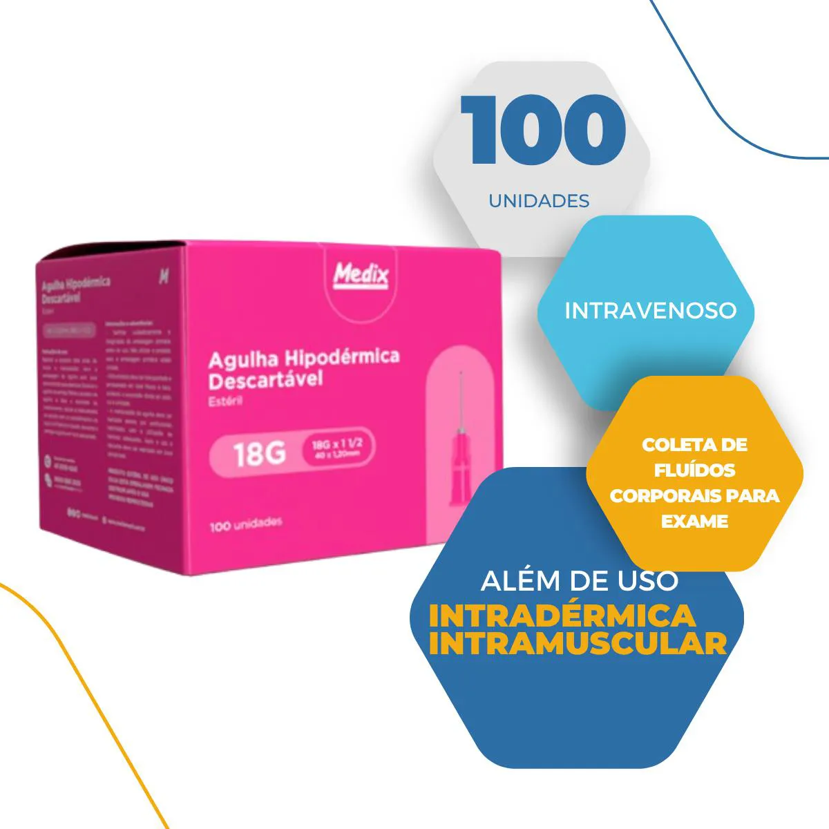 Agulha Hipodérmica Descartável 40Mm X 1,2Mm - Medix 100 Un