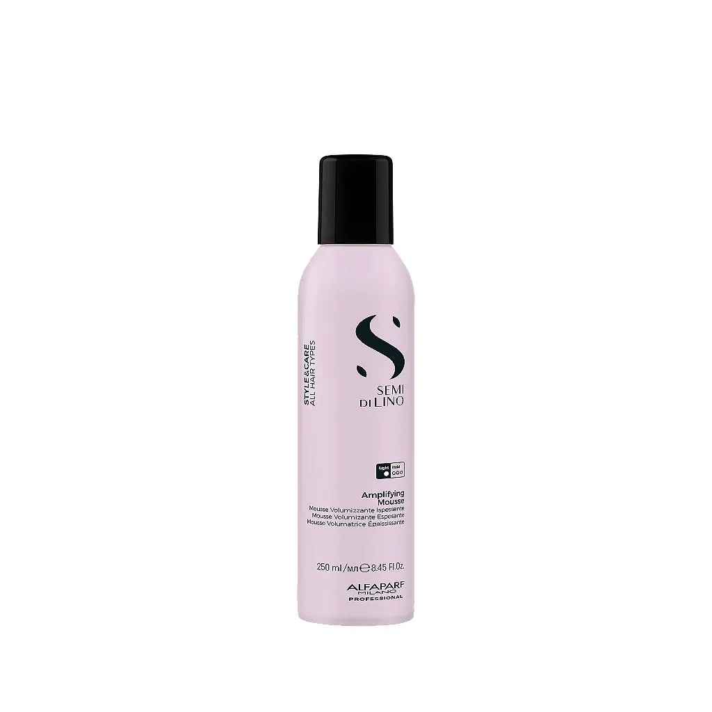 Semi di Lino Amplifying Mousse é uma mousse com efeito de modelagem que amplifica o volume e dá espessura a fibra capilar, deixando os fios leves e luminosos.