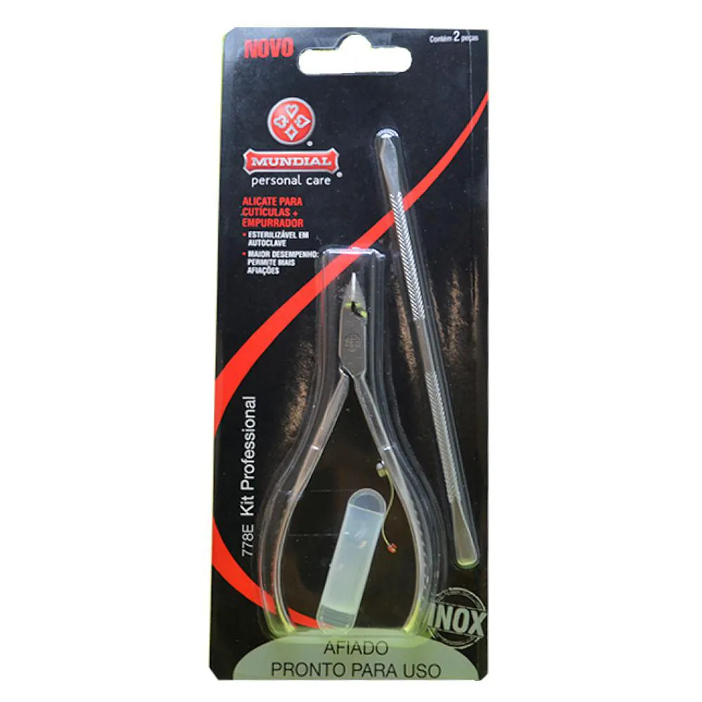 Mundial traz o kit perfeito para o manuseio de cutículas, profissional, alicate e espátula dupla para raspar e empurrar a cutícula. O kit apresenta itens em aço inox esterilizável em estufa ou autoclave, alta resistência e durabilidade, pronto para uso.