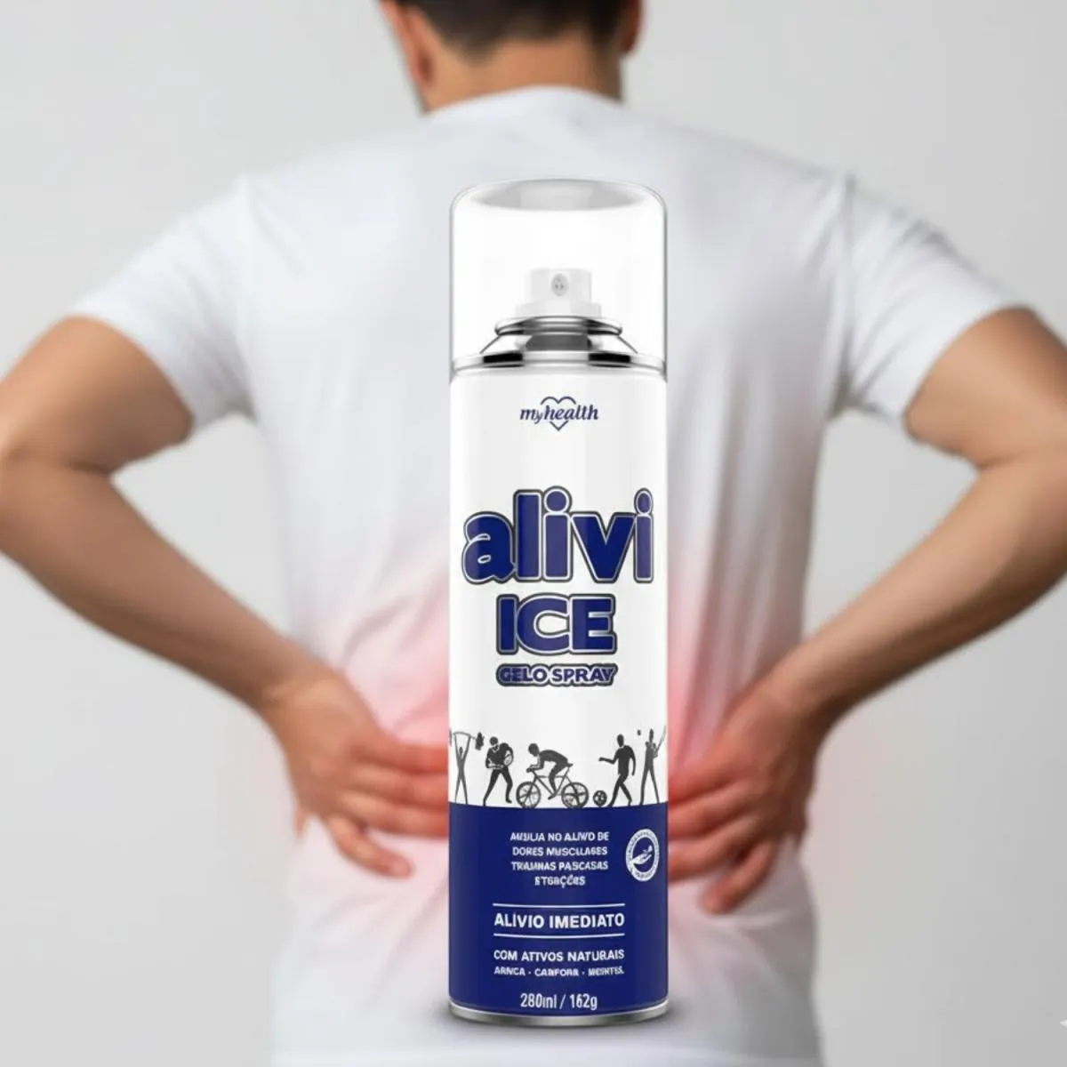 Alivi Ice MyHealth 280mL – Gelo spray O Alivi Ice MyHealth é um spray de efeito gelo que proporciona alívio imediato e refrescante para áreas doloridas. Sua ação rápida ajuda a reduzir a sensação de dor, desconforto muscular e inchaço, sendo ideal para pós-treino, contusões, torções e tensões do dia a dia. Diferenciais