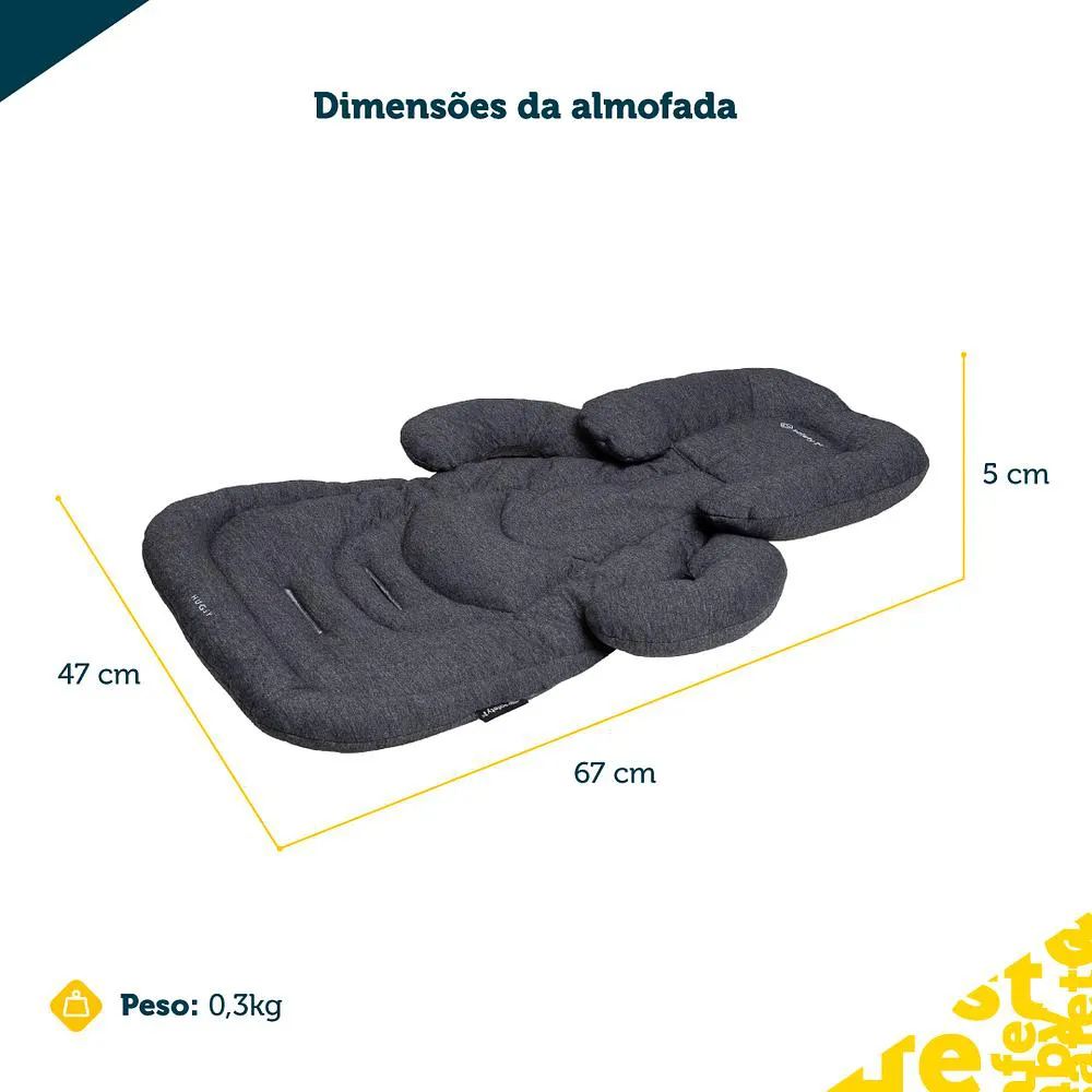 Almofada para Carrinhos e bebê conforto SafeHuggy - Safety 1stBRBRA Almofada SafeHuggy da Safety 1st foi desenvolvida para proporcionar mais conforto e segurança ao bebê durante os passeios, adaptando-se perfeitamente à maioria dos carrinhos e bebê conforto. Com formato ergonômico, apoio lateral e de cabeça, ela acolhe suavemente o bebê e ajuda a manter a postura ideal, tornando cada trajeto mais tranquilo e aconchegante.BRBRCaracterísticas do Produto:BR• Design ergonômico: Acomoda o bebê com conforto e estabilidade desde o nascimentoBR• Apoios laterais e na cabeça: Bordas elevadas que proporcionam acolhimento e segurançaBR• Tecido super macio: Malha delicada ao toque, ideal para a pele sensível do bebêBR• Lavável à máquina: Fácil de manter sempre limpa, com secagem rápidaBR• Ajuste para cintos: Aberturas com duas regulagens para compatibilidade com diferentes modelos de carrinho e bebê confortoBR• Conforto extra: Acolchoamento reforçado na área do assentoBR• Compatibilidade universal: Adapta-se à maioria dos carrinhos e bebê conforto do mercadoBRBREspecificações Técnicas:BR• Indicação: A partir de 0 mesesBR• Dimensões: 67 x 47 x 5 cm (A x L x P)BR• Peso: 308 gBR• Composição (Dark Melange): 50% algodão, 50% poliésterBR• Composição (Light Melange): 88% algodão, 12% poliésterBR• Conteúdo da embalagem: 1 almofada SafeHuggyBR• Garantia do fornecedor: 12 mesesBRBRA SafeHuggy é como um abraço seguro que transforma os passeios e momentos de descanso do seu bebê em experiências mais acolhedoras, práticas e tranquilas para toda a família.