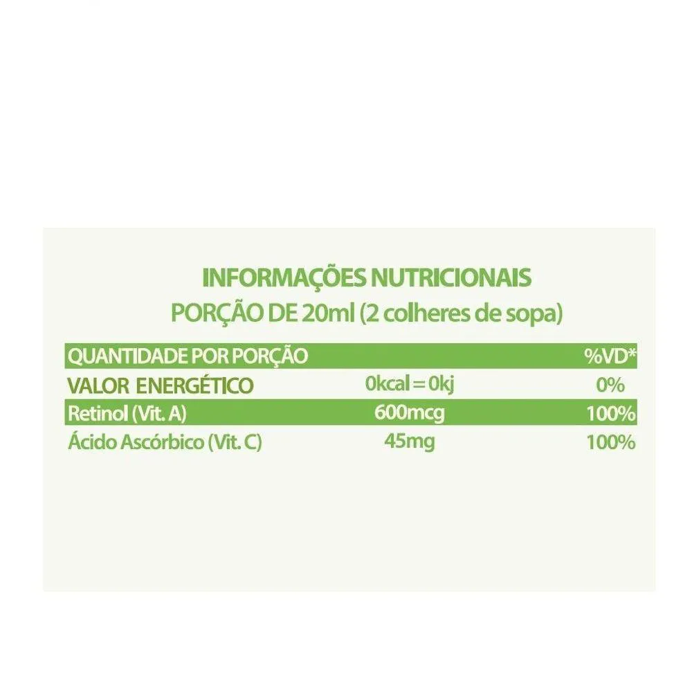 - Suplemento com vitaminas A e C e sabor aloe vera.