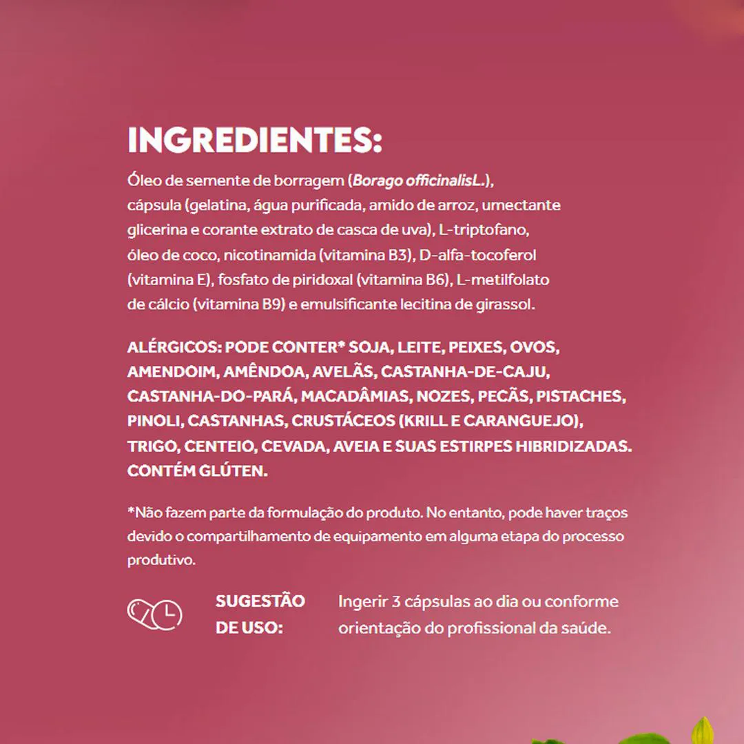 - Óleo de borragem (Borago officinalis): fonte de ácido gama-linolênico (GLA), um tipo de ômega-6 envolvido na produção de prostaglandinas.
