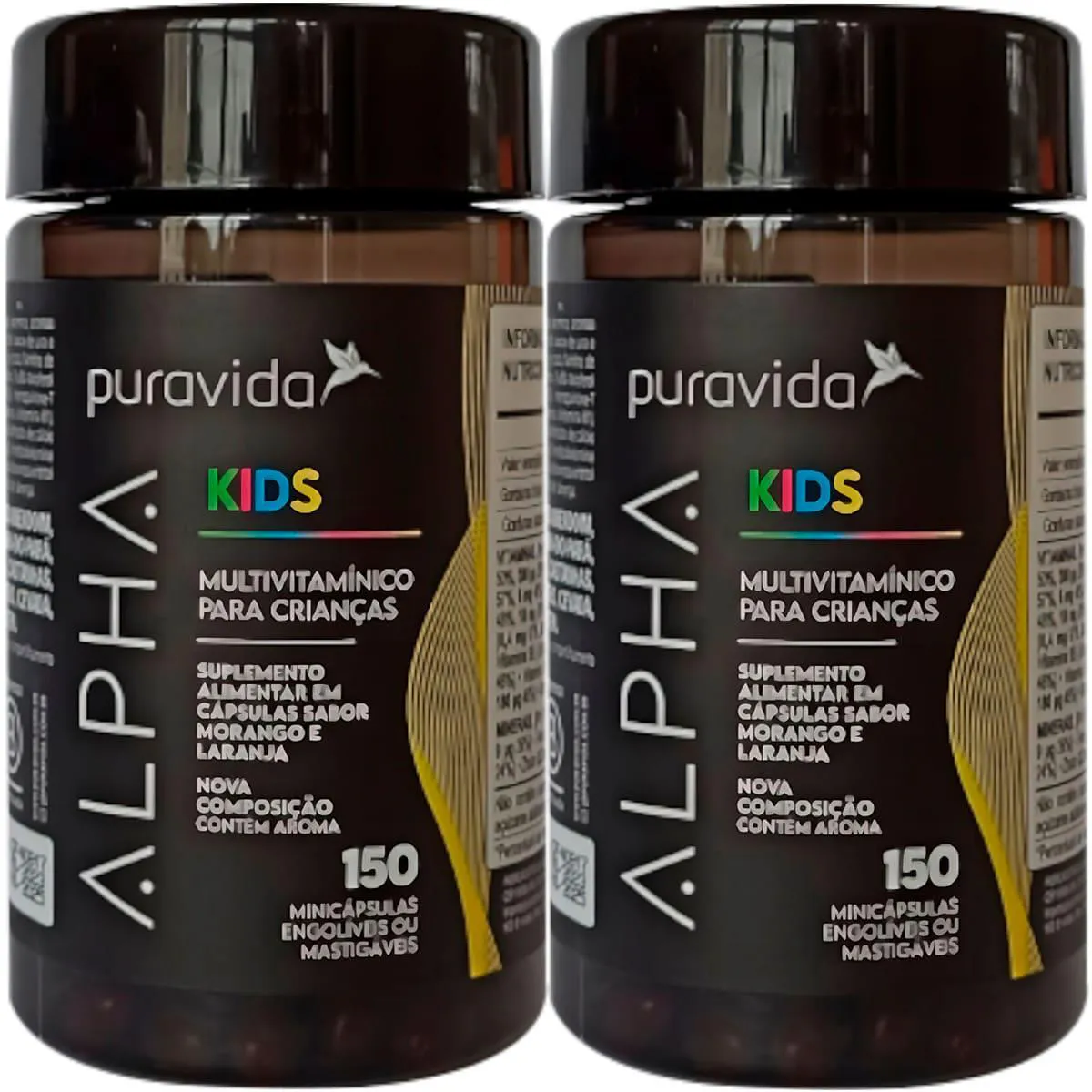 Kit Polivitamínico Infantil Puravida Alpha Kids 150 cápsulas 2 unidades