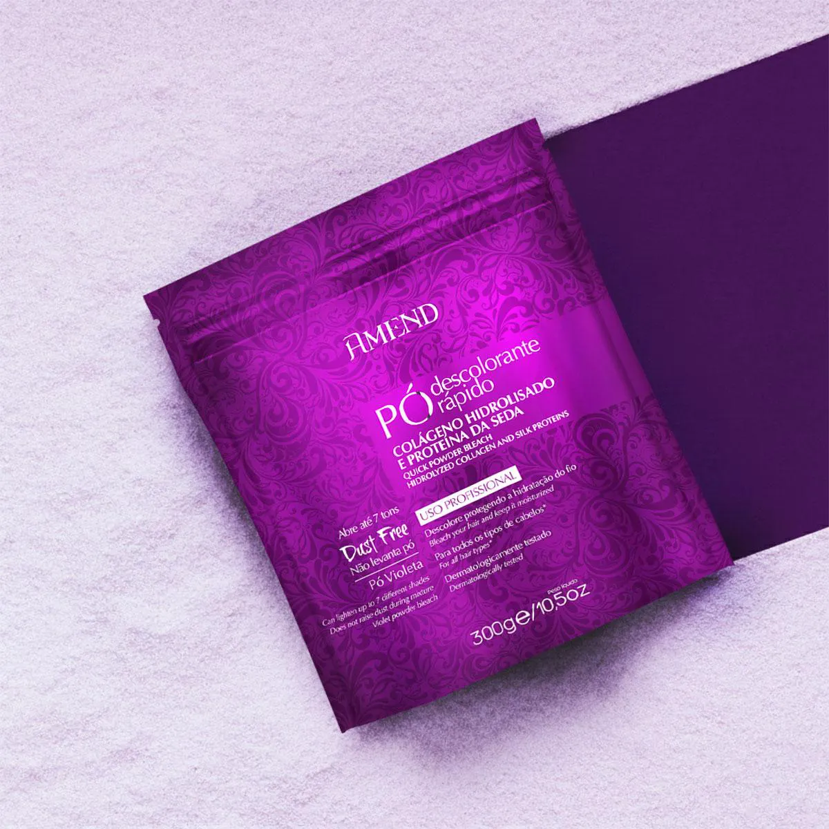 Amend colágeno e Proteína da Seda - Clareamento Uniforme, Fios Protegidos e Brilho Intenso Proporciona o clareamento de até 7 tons com segurança e uniformidade. Enriquecido com colágeno e proteína da seda, preserva a hidratação e resistência dos fios durante a descoloração, deixando-os suaves e com brilho saudável.
