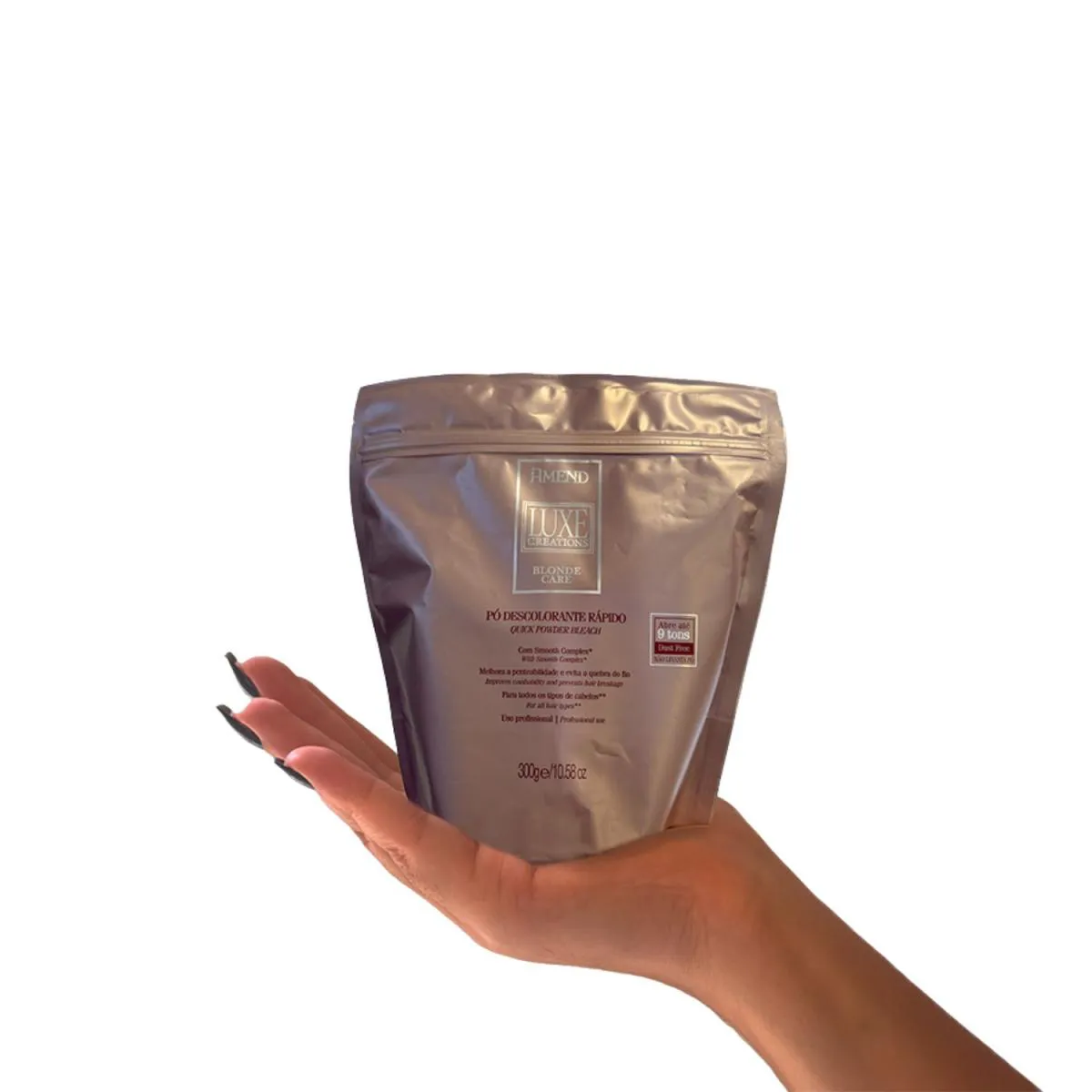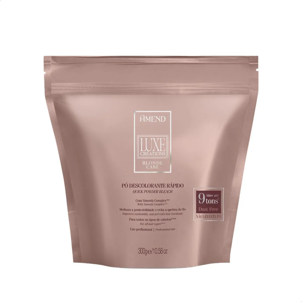 O Pó Descolorante Amend Luxe Creations é um produto profissional de descoloração capilar, desenvolvido para clarear os cabelos de forma eficiente e segura. Formulado com Smooth Complex, o produto foi criado para realizar descolorações com alto desempenho, permitindo clareamento uniforme de até 9 tons, mantendo a resistência e a saúde dos fios. Sua fórmula Dust Free proporciona manuseio confortável, evitando dispersão de partículas durante a aplicação.