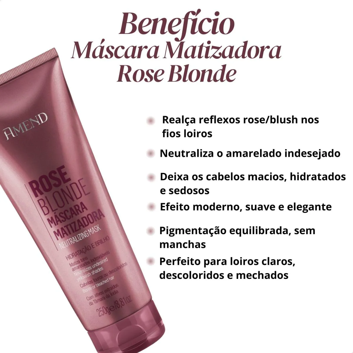 *** Loja Oficial Beleza Marcante *** A Beleza Marcante cosméticos é uma loja virtual que, há mais de 8 anos, cuida com carinho da beleza de pessoas modernas e atualizadas. Com um olhar atento, buscamos oferecer produtos inovadores que realçam a beleza natural e promovem o bem-estar. ESTOQUE DISPONÍVEL – ENVIO IMEDIATO APÓS CONFIRMAÇÃO DA COMPRA – ENVIAMOS PARA TODO BRASIL - COM NOTA FISCAL - TODAS AS FOTOS SÃO REAIS – DIRETO DA FÁBRICA. -Loja Oficial na plataforma -Mais de 8 anos entre os melhores vendedores nos Marketplaces -Variedade completa de produtos de qualidade -Atendimento humanizado e especializado -Entrega rápida e segura para todo o Brasil -Fotos reais dos produtos -Compras 100% seguras Este anúncio contém: 1 unidade AMEND ROSE BLONDE MÁSCARA MATIZADORA 250g – Cód. 1325 A Amend Rose Blonde Máscara Matizadora 250g foi criada para quem deseja neutralizar tons amarelados e revelar reflexos rose sofisticados enquanto trata profundamente a fibra capilar. Com ação imediata e fórmula rica em pigmentos especiais, ela matiza, hidrata, nutre e recupera fios loiros descoloridos ou coloridos, deixando o cabelo mais vibrante, luminoso e saudável. Loiros e descoloridos tendem a perder brilho, ficar opacos e ganhar aquele amarelado indesejado com o tempo. A Amend Rose Blonde chega como solução completa: matiza já na primeira aplicação e devolve vida e luminosidade ao cabelo. -Matização imediata: corrige tons amarelados e realça nuances rose com alta performance. -Hidratação e brilho: fórmula rica em ativos que tratam profundamente fios fragilizados pela descoloração. -Recuperação da fibra capilar: ação nutritiva que restaura, fortalece e prolonga o brilho. -Proteção solar: ajuda a preservar a cor e evitar oxidação causada por exposição à luz. -Livre de amônia, parabenos e oxidantes: ideal para quem procura matização eficaz sem agressões. -Dermatologicamente testada. Realce o melhor do seu loiro ou descolorido com reflexos rose modernos e brilho intenso. Adicione ao carrinho e transforme sua cor desde a primeira aplicação. MODO DE USAR: Após lavar os cabelos, retire o excesso de água com uma toalha. Aplique a máscara mecha a mecha, do comprimento às pontas. Deixe agir de 1 a 5 minutos, observando o efeito desejado. Enxágue abundantemente até remover completamente o produto. Use luvas para evitar pigmentação nas mãos. CONSERVAÇÃO DO PRODUTO: Mantenha a embalagem bem fechada após o uso. Armazene em local fresco, longe da luz direta e calor. Não permitir contato de água dentro da embalagem para preservar a fórmula. Verificar validade e não utilizar se houver alteração visível de textura ou odor. Perguntas Frequentes (FAQ) 1. A máscara funciona em cabelos loiros naturais? Funciona melhor em cabelos descoloridos ou coloridos, mas pode tonalizar levemente loiros naturais. 2. Quanto tempo devo deixar agir? De 1 a 5 minutos. Quanto mais tempo, mais intensa fica a matização. 3. Pode usar toda semana? Sim, especialmente se os fios apresentarem amarelado frequente. Ajuste conforme o resultado desejado. 4. Mancha as mãos? Pode pigmentar levemente. Recomendado o uso de luvas. 5. Deixa o cabelo ressecado? Não — a fórmula contém ativos hidratantes e nutritivos, mantendo o fio tratado após a matização. 6. É indicado para cabelos grisalhos? Não, esse produto não é indicado para aplicação em fios grisalhos. ATENÇÃO! Não aceitamos devoluções de produtos usados. Pedimos, por gentileza, que verifique todas as informações antes de finalizar sua compra. Estamos à disposição para esclarecer qualquer dúvida na área de perguntas do anúncio. Será um prazer atendê-lo(a)! BELEZA MARCANTE COSMÉTICOS.