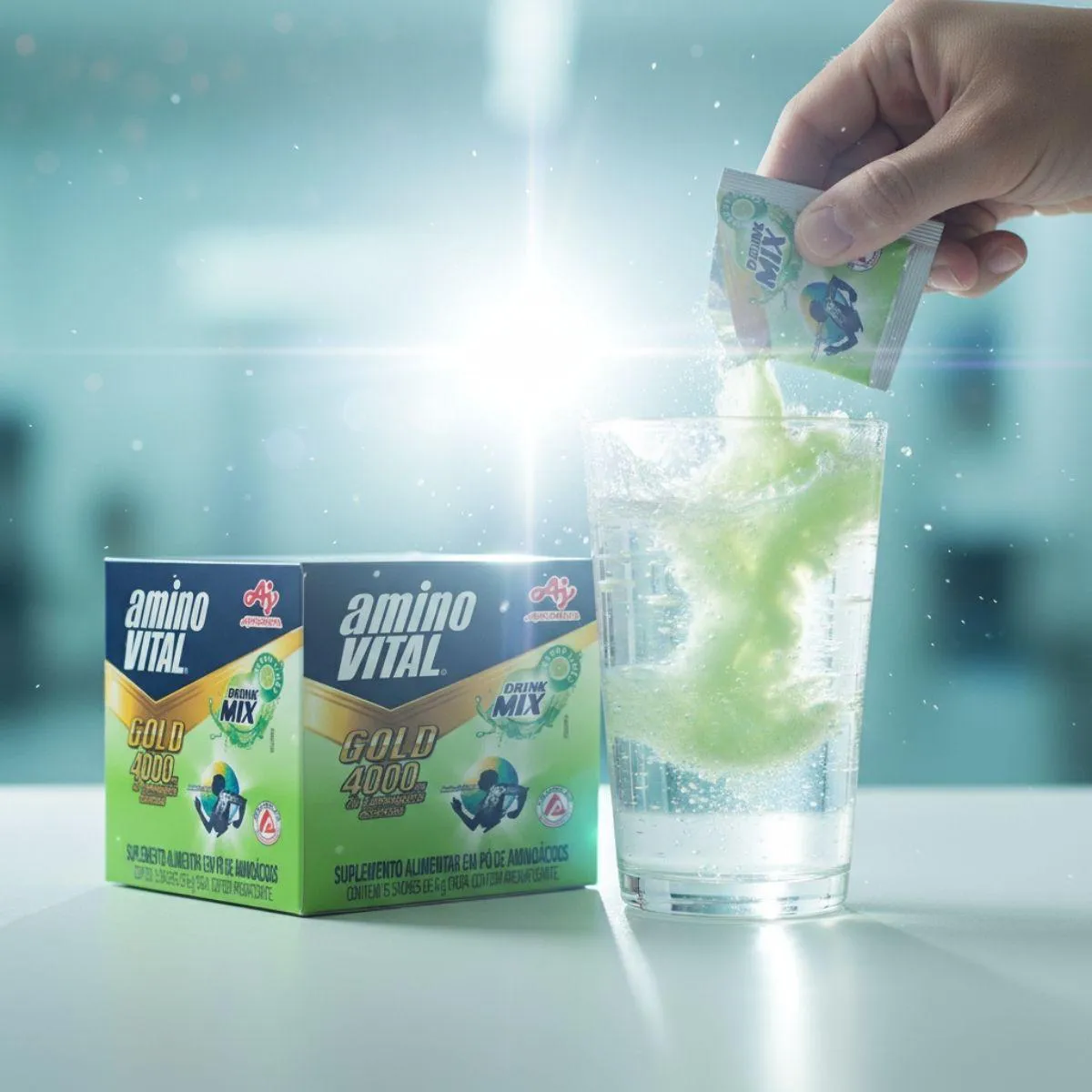 - Abra um sachê de Amino Vital Gold de 6g.