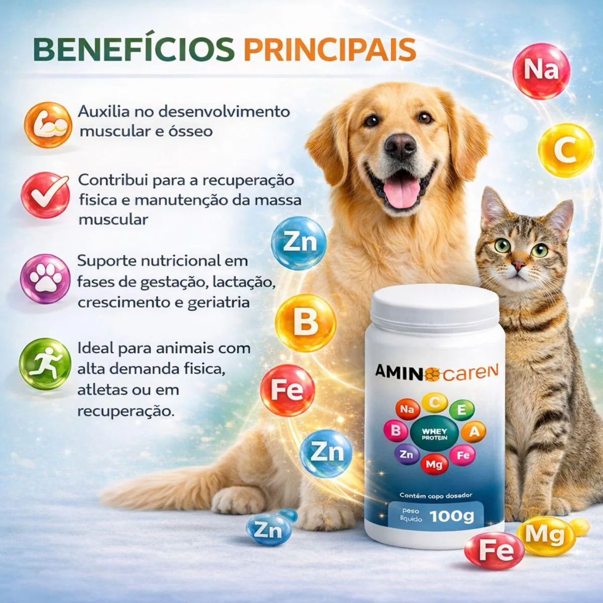 O que é e para que serve o Aminocare multivitamínicos, Suplemento Alimentar Para Cães E Gatos - 100G?