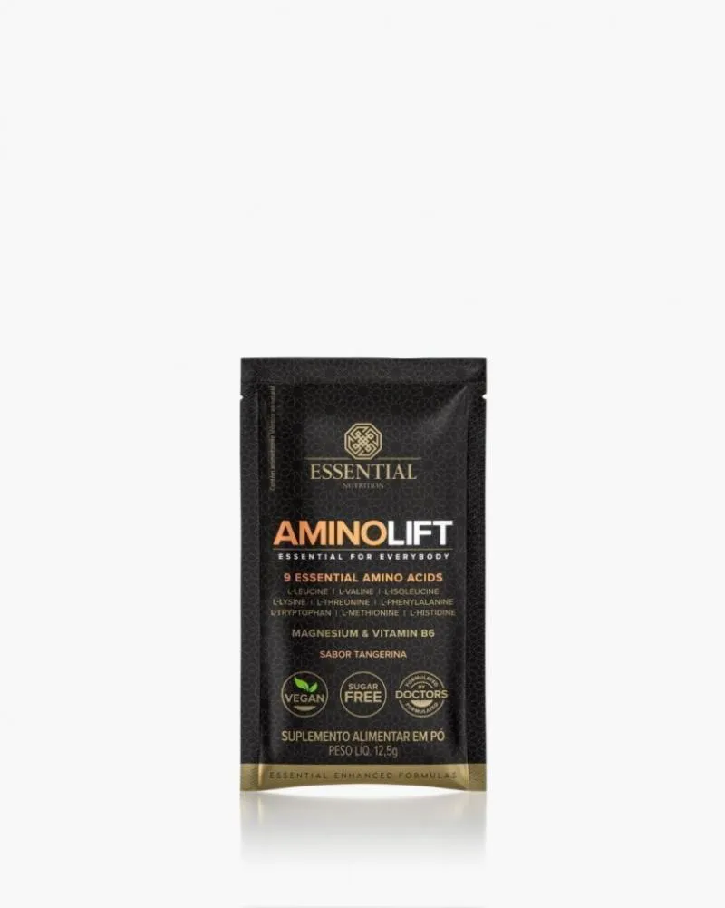 Aminolift Sachê (12,5g) AMINOLIFT fornece os nove aminoácidos essenciais, associados ao magnésio e à vitamina B6. A combinação desses aminoácidos em sua forma livre e em proporções adequadas possibilita o máximo aproveitamento no organismo. Os 9 aminoácidos essenciais - aqueles que o nosso corpo não produz e que, por isso, devem ser obtidos por meio da alimentação ou suplementação - estão combinados na fórmula do AMINOLIFT. Os aminoácidos são os blocos que formam as proteínas, que, por sua vez, são as estruturas básicas do nosso organismo. Nossos músculos, cabelos, unhas e peles são, assim como nosso sangue e nosso sistema imunológico, essencialmente formados por proteínas, ou seja, por combinações de aminoácidos. ** CONHEÇA OS AMINOÁCIDOS ESSENCIAIS (EAAS): * L-Leucina, L-Isoleucina, L-Valina - Compõem a tríade de aminoácidos de cadeia ramificada (BCAA). Os BCAA’s correspondem a cerca de 35% dos aminoácidos essenciais nas proteínas musculares;* L-Triptofano - Muito conhecido por ser precursor da serotonina, importante neurotransmissor do sistema nervoso central;* L-Lisina - Associada com a biossíntese de importantes estruturas do corpo;* L-Histidina - Necessária para a síntese de proteínas e para a atividade de enzimas específicas;* L-Metionina - Aminoácido precursor da cisteína, que faz parte da estrutura da glutationa, nosso maior antioxidante endógeno;* L-Treonina - Componente importante de diferentes tecidos estruturais;* L-Fenilalanina - Necessária para a formação de diferentes proteínas. ** NUTRIENTES COMPLEMENTARES: * O magnésio - auxilia no equilíbrio dos eletrólitos, no funcionamento muscular e neuromuscular, no processo de divisão celular e no metabolismo de proteínas, carboidratos e gorduras.* A vitamina B6 - auxilia o metabolismo de proteínas e do glicogênio, na formação das células vermelhas do sangue e no funcionamento do sistema imune. BENEFÍCIOS: - Reparação, crescimento e manutenção do tecido muscular;- Regulação hormonal;- Regulação do humor, do sono e do apetite;- Fornecem energia para o corpo, além de auxiliar no metabolismo de gorduras e carboidratos;- Manutenção do sistema imunológico;- Manutenção da saúde da pele, cabelos e unhas;- Melhora o desempenho físico em atividades de endurance e resistência, reduzindo a fadiga muscular e promovendo a recuperação muscular;- Ajudar a manter a massa muscular enquanto se perde gordura. NÃO CONTÉM:- Açúcar;- Glúten;- Lactose;- Conservantes;- adoçantes artificiais;- Aromas artificiais;- Corantes artificiais;- Polióis.