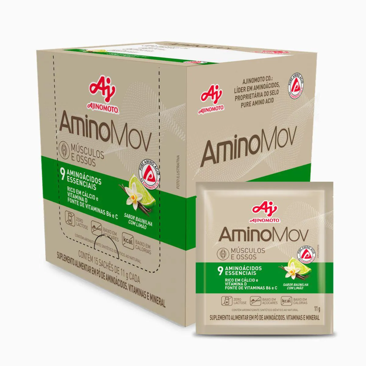 Aminomov 9 Amino Essenciais Builder 11G Box 15 Sache Ajinomoto Baunilha COM Limão