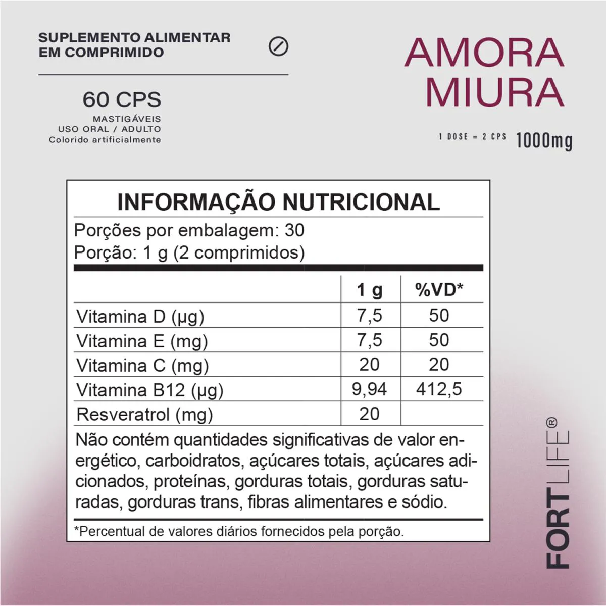 Amora Miúra 1000Mg Fortlife 60 Comprimidos Mastigáveis