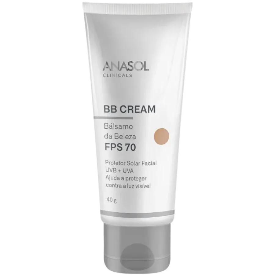 BB cream para todos os tipos de pele. Com cobertura natural e toque seco, Anasol Clinicals BB Cream FPS 70 protege do sol e uniformiza o tom da pele, com efeito matte.