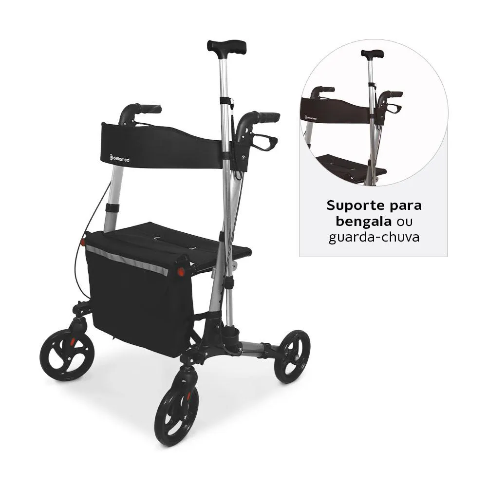 Andador D14 + Bengala T Bastão D8 Dellamed Preto