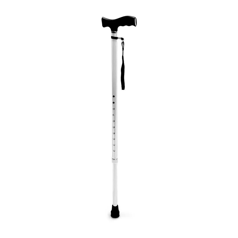 A Bengala Bastão Tipo T D8 Dellamed foi desenvolvida pensando na melhor forma de auxiliar adultos e idosos com dificuldade de equilíbrio e locomoção. A estrutura é de alumínio anodizado espelhado: leve, não risca, não perde o brilho e não enferruja. O apoio de mão é anatômico e a bengala dispõe de sistema antirruído (marcha silenciosa), sendo regulável em até 10 níveis de altura através de engate rápido por pino click.