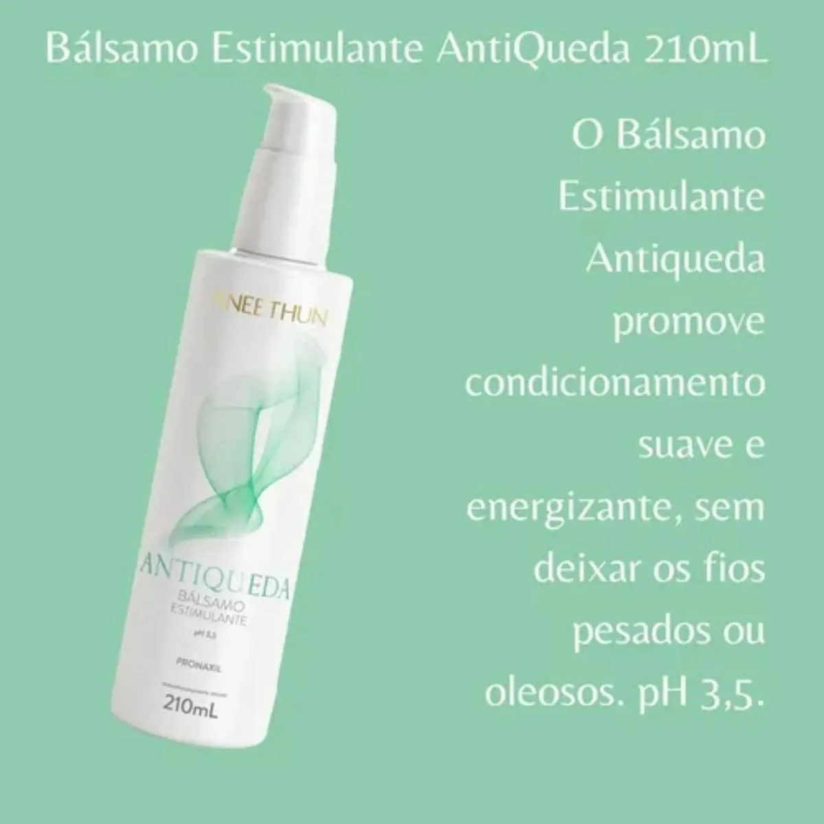 Aneethun antiqueda Bálsamo Estimulante 210ml é um tônico capilar desenvolvido para auxiliar no combate à queda e estimular o crescimento saudável dos fios. Sua fórmula concentrada age diretamente no couro cabeludo, fortalecendo a raiz, ativando a microcirculação e melhorando a densidade capilar.