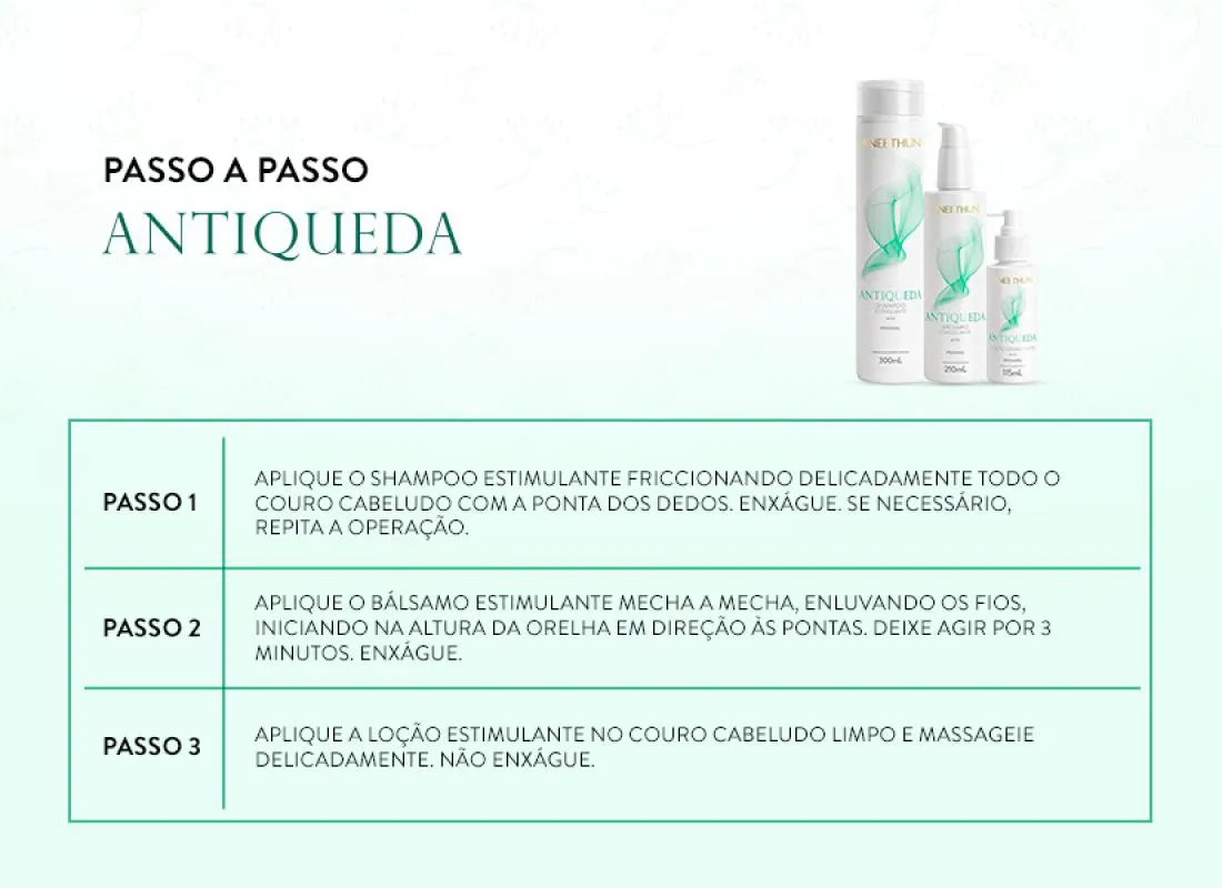 Limpeza eficaz e tratamento antiqueda desde a raiz. O Shampoo Estimulante AntiQueda Aneethun é o primeiro passo no tratamento contra a queda capilar. Indicado para todos os tipos de cabelo com tendência à queda, sua fórmula exclusiva com tecnologia Pronaxil age diretamente no couro cabeludo e nos fios, reduzindo e prevenindo a queda enquanto estimula o crescimento saudável. O produto promove uma limpeza suave e revitalizante, que prepara o couro cabeludo para os próximos passos do tratamento. Ideal para uso diário, devolve a densidade aos cabelos e fortalece os fios desde a raiz.Benefícios