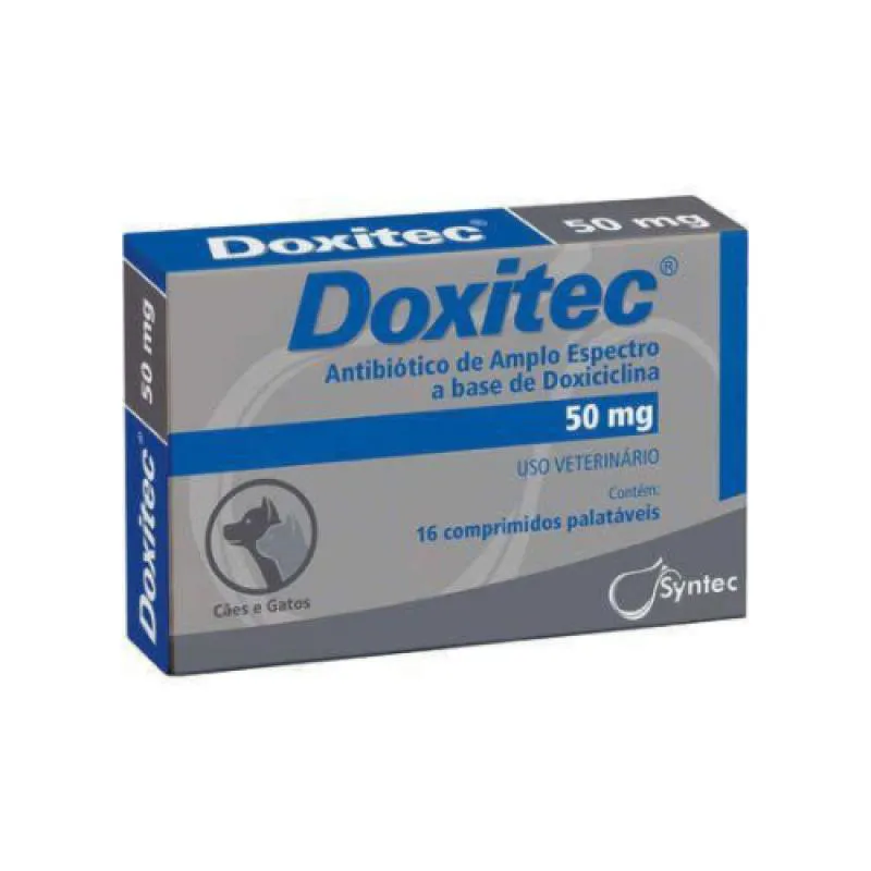 Doxitec é um antibiótico palatável oral, de amplo espectro de ação, pertencente ao grupo das tetraciclinas, agindo sobre bactérias Gram positivas, Gram negativas e organismos intracelulares. À base de Doxici clina, é indicado para o tratamento das infecções do trato respiratório, gastrointestinal, gênito urinário, pele e anexos. Combate também a Erlichiose canina entre outras enfermidades.