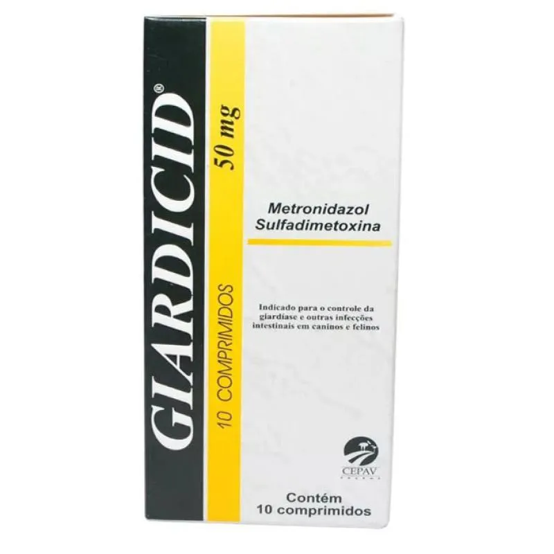O Antibiótico Giardicid é um tratamento contra giardia e outros protozoários intestinais causados por Giardia spp.; da coccidiose causada por Isospora canis e Isospora ohioensis; da trichomoníase causada por Trichomonas spp.; da amebíase causada por Entamoeba histolytica; bem como de infecções entéricas causadas por microrganismos sensíveis à sulfadimetoxina e ao metronid azol, tais como: Bacteroides spp.; Fusobacterium spp. e clostridioses causadas por Clostridium spp.