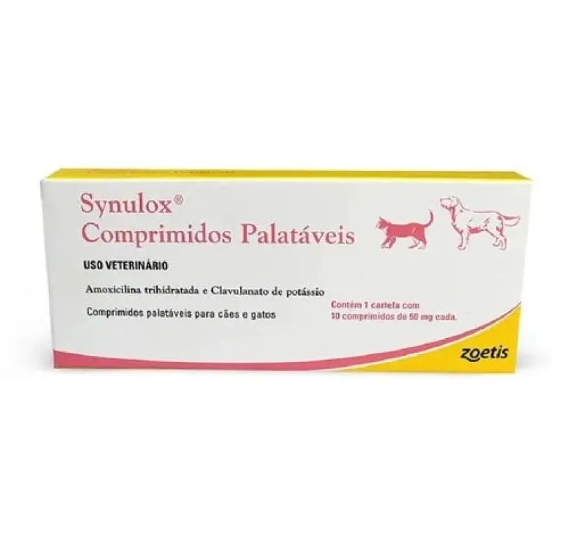 Antibiótico Synulox 50Mg Zoetis para Cachorros e Gatos 10 Comprimidos