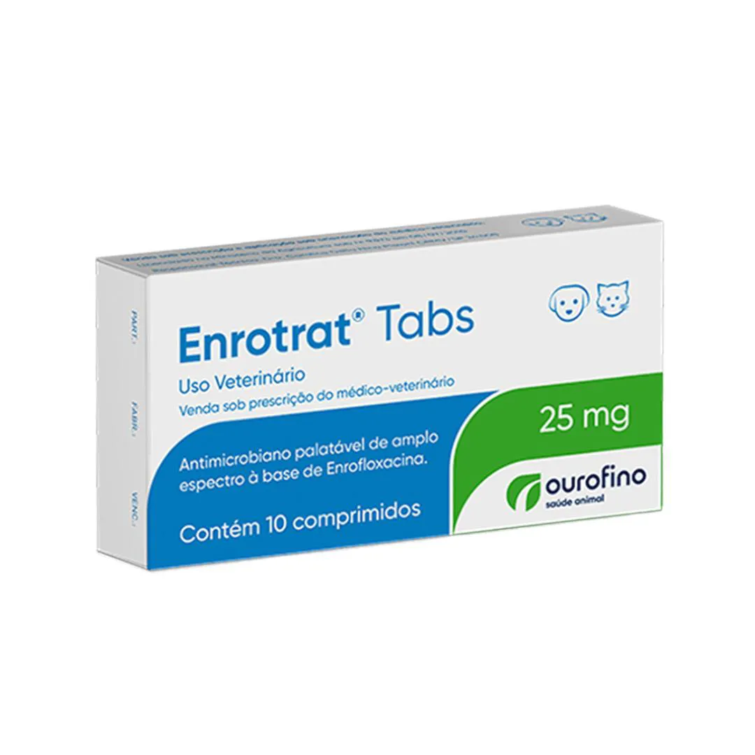 Antimicrobiano Enrotrat Tabs Ourofino 25Mg para Cães e Gatos com 10 Comprimidos