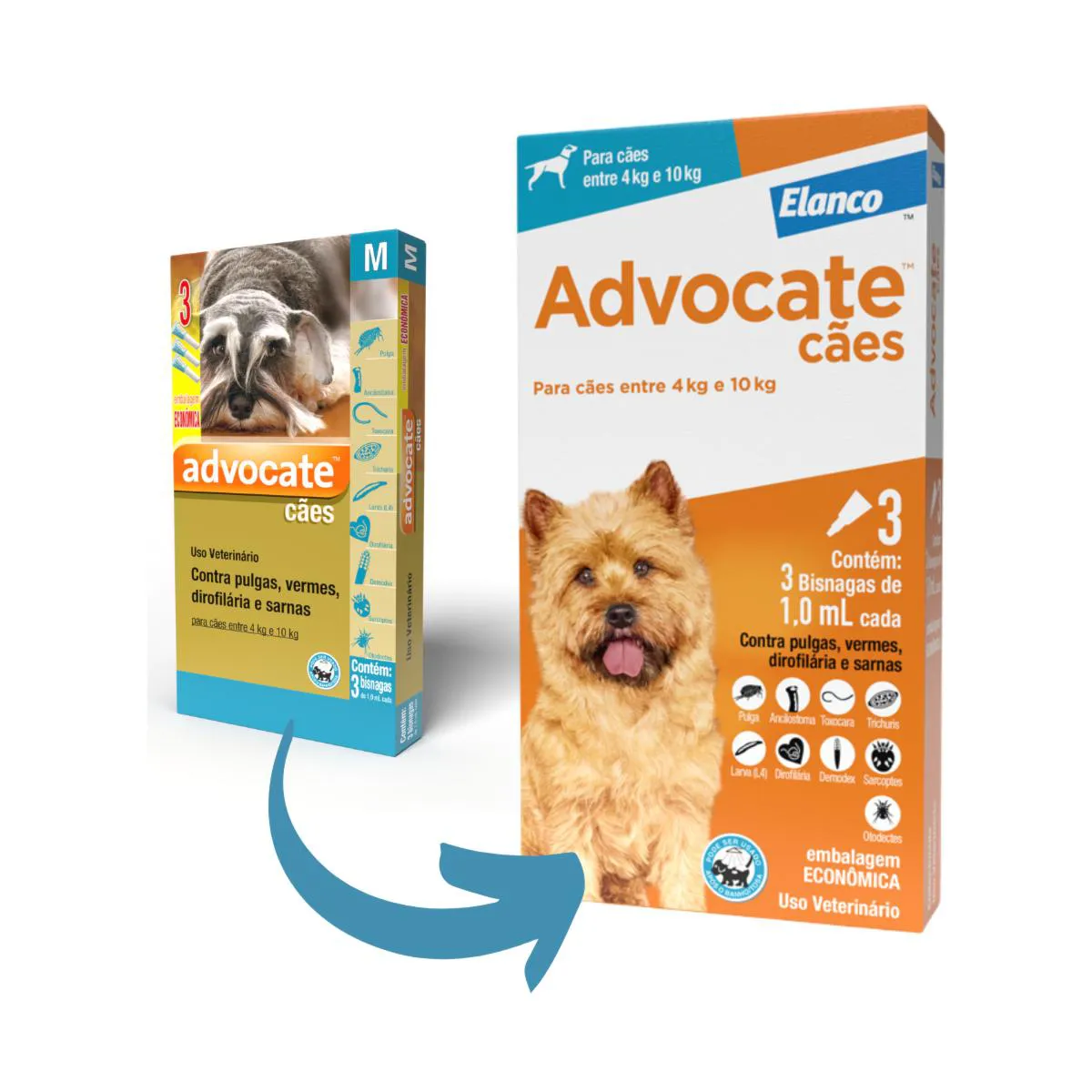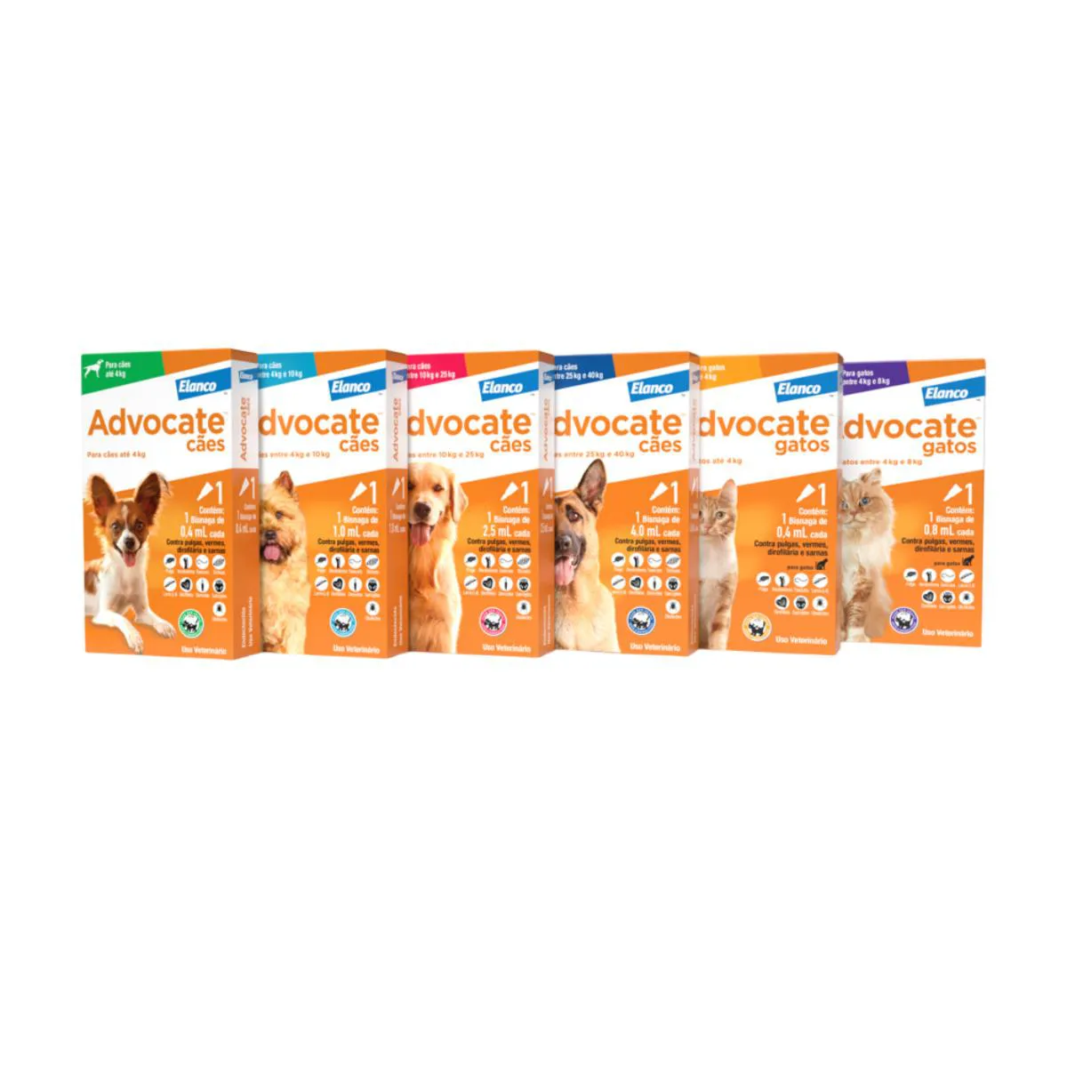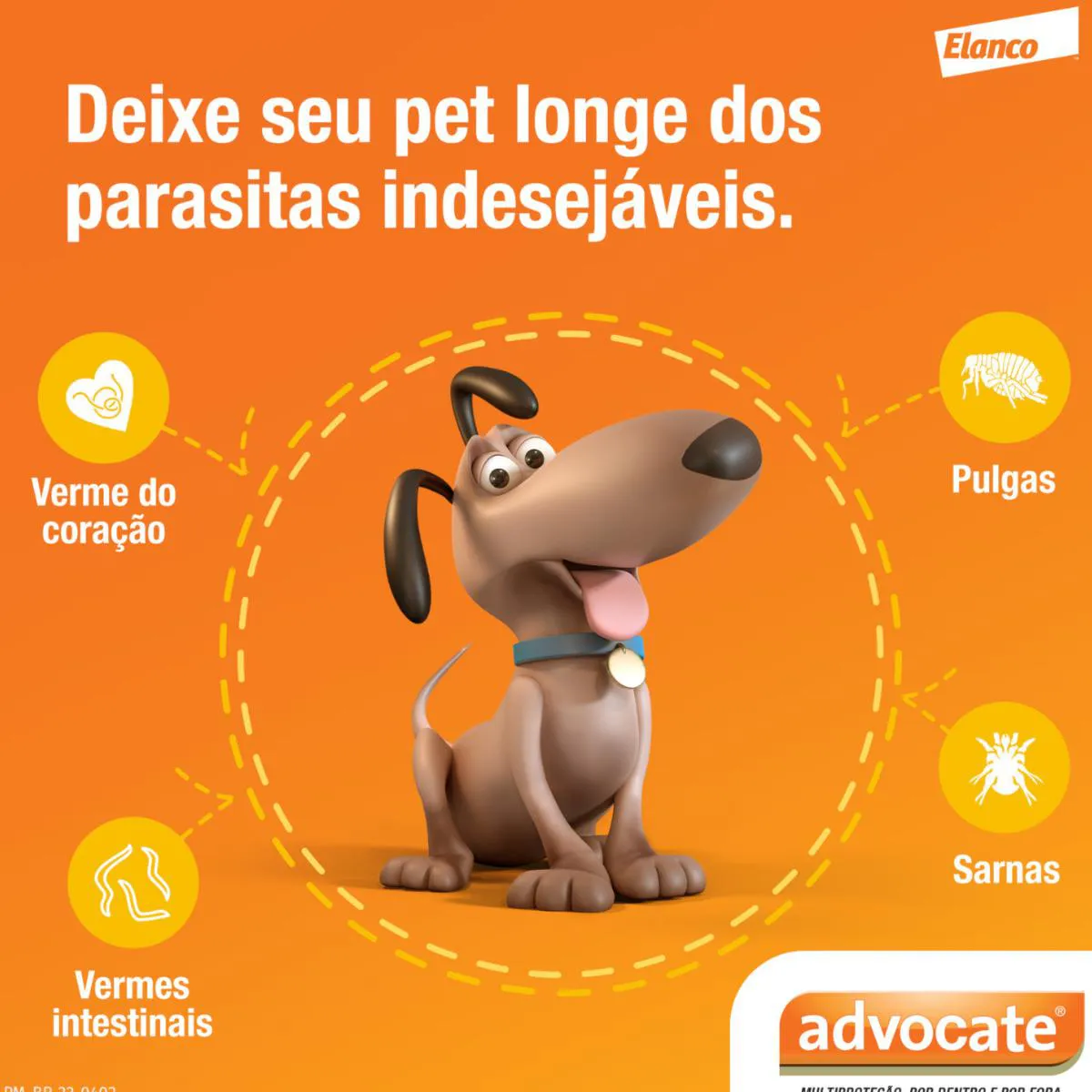 O Antipulgas Advocate oferece proteção completa contra pulgas, vermes intestinais e do coração (dirofilariose), além das sarnas.