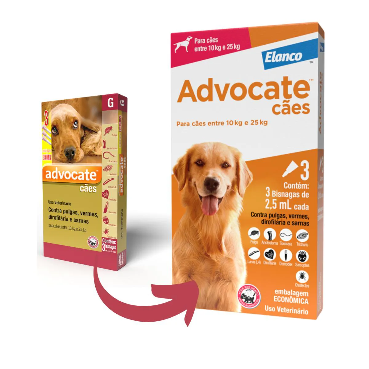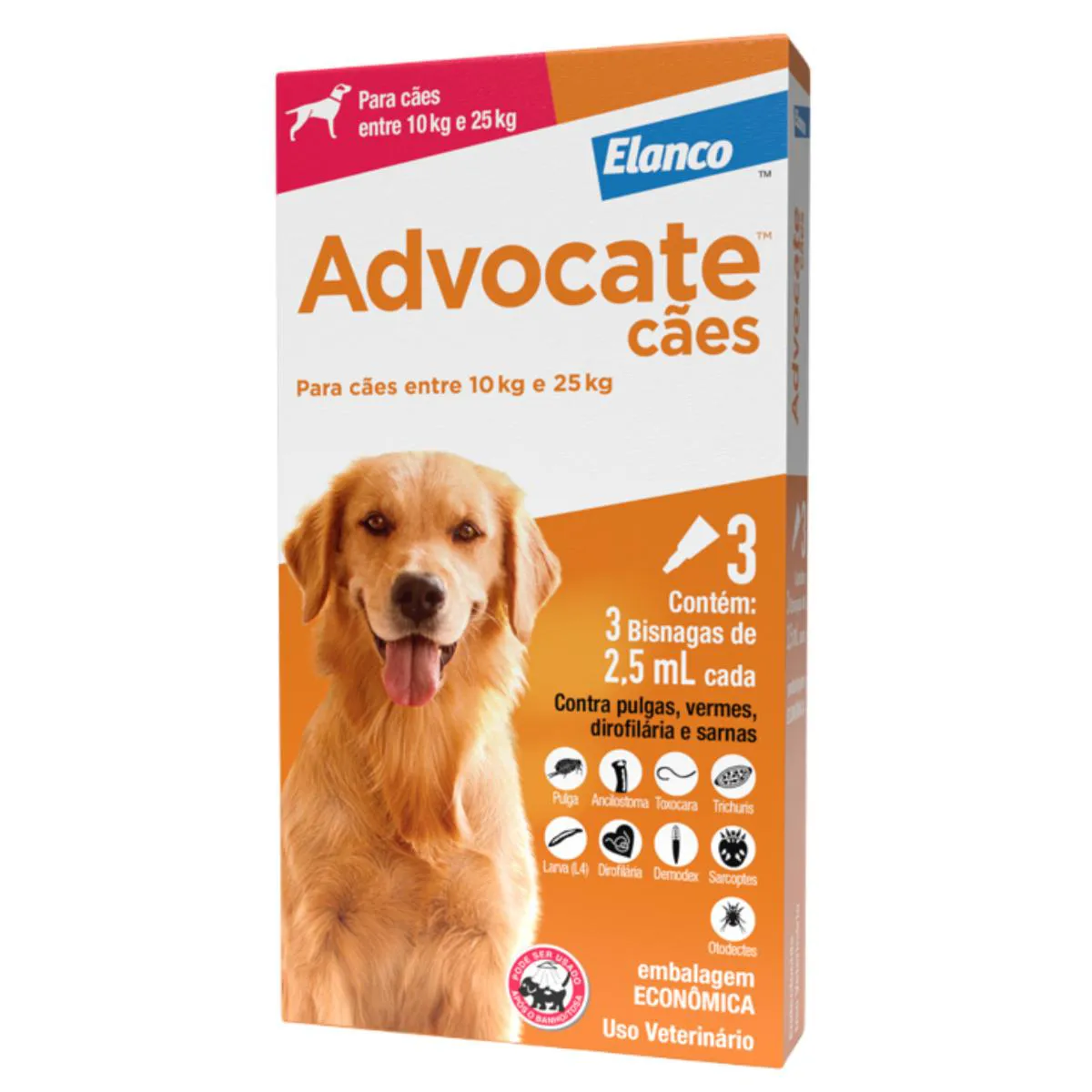 Antipulgas Advocate 2,5ml Para Cães De 10kg Até 25kg Com 3 Pipetas
