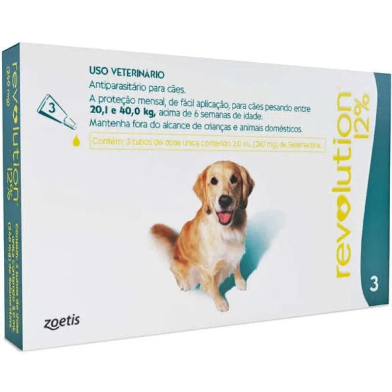 Revolution 12% (240 mg) para Cachorro de 20,1Kg a 40kg Antipulgas e carrapatos 3un