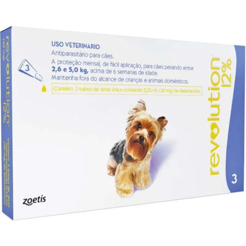 Antipulgas e Carrapatos Revolution 12% (30 Mg) para Cachorros de 2,5Kg a 5Kg com 3 Pipetas