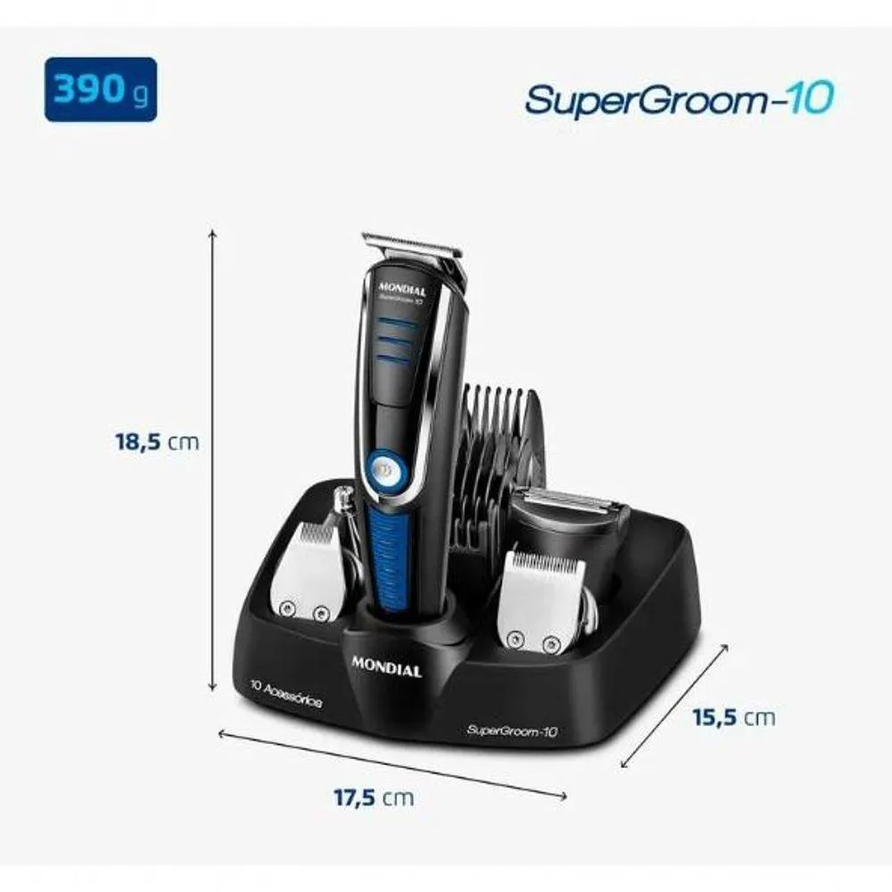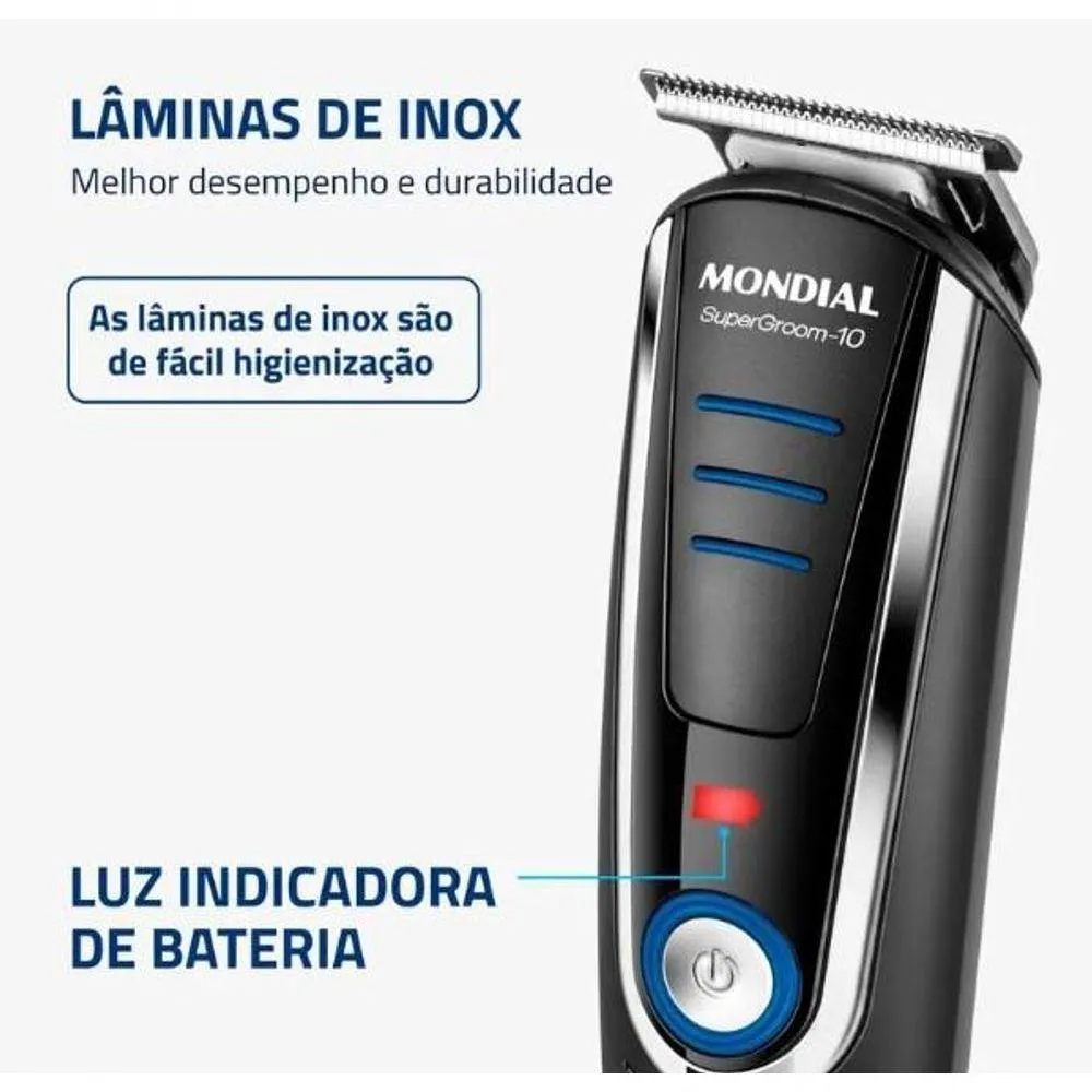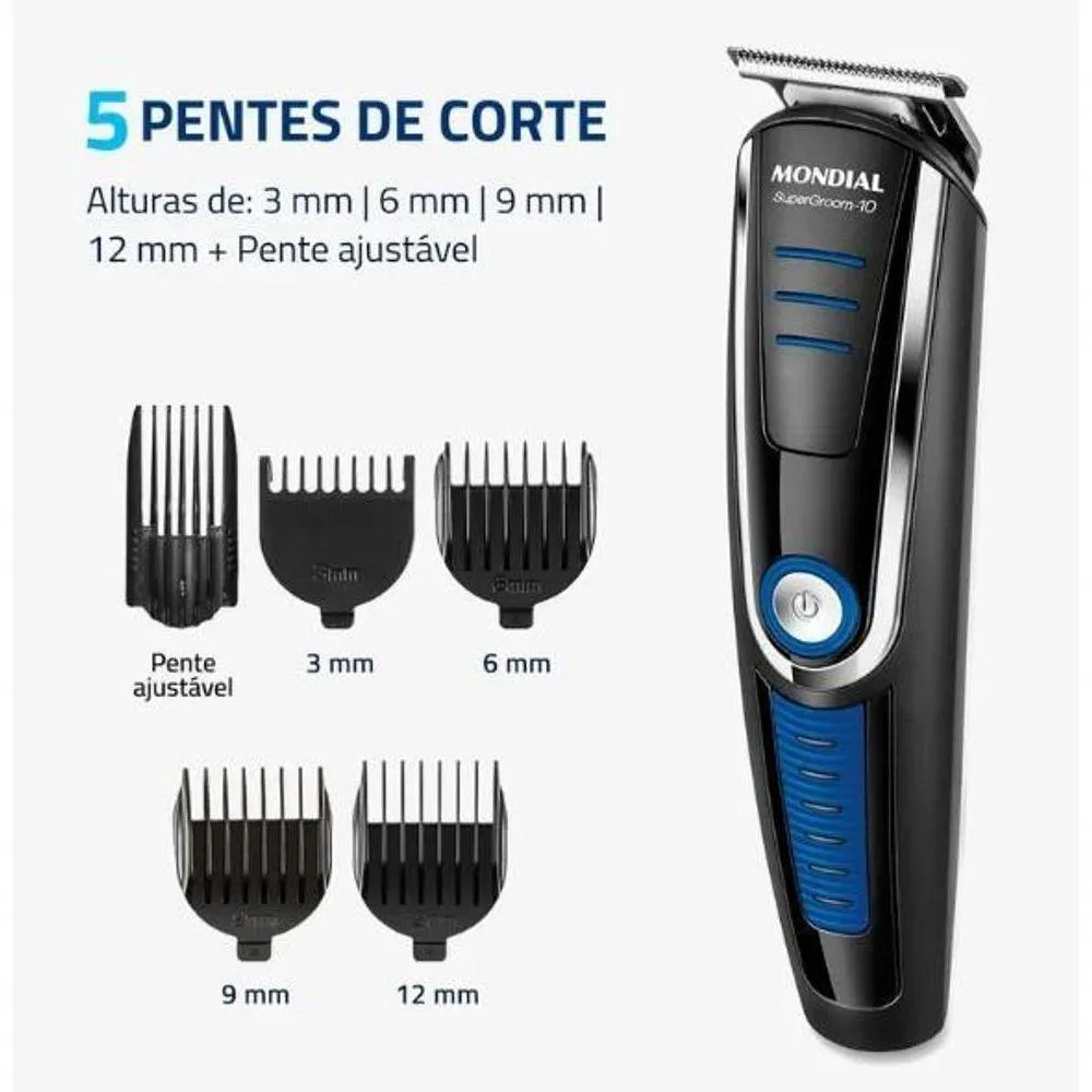 Aparador de Pelos Mondial Super Groom 10 Bg-03 Preto/Azul Bivolt