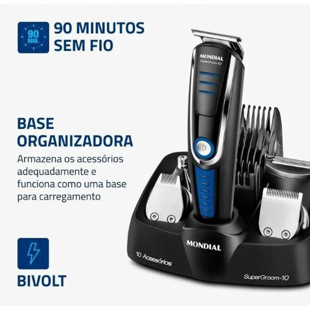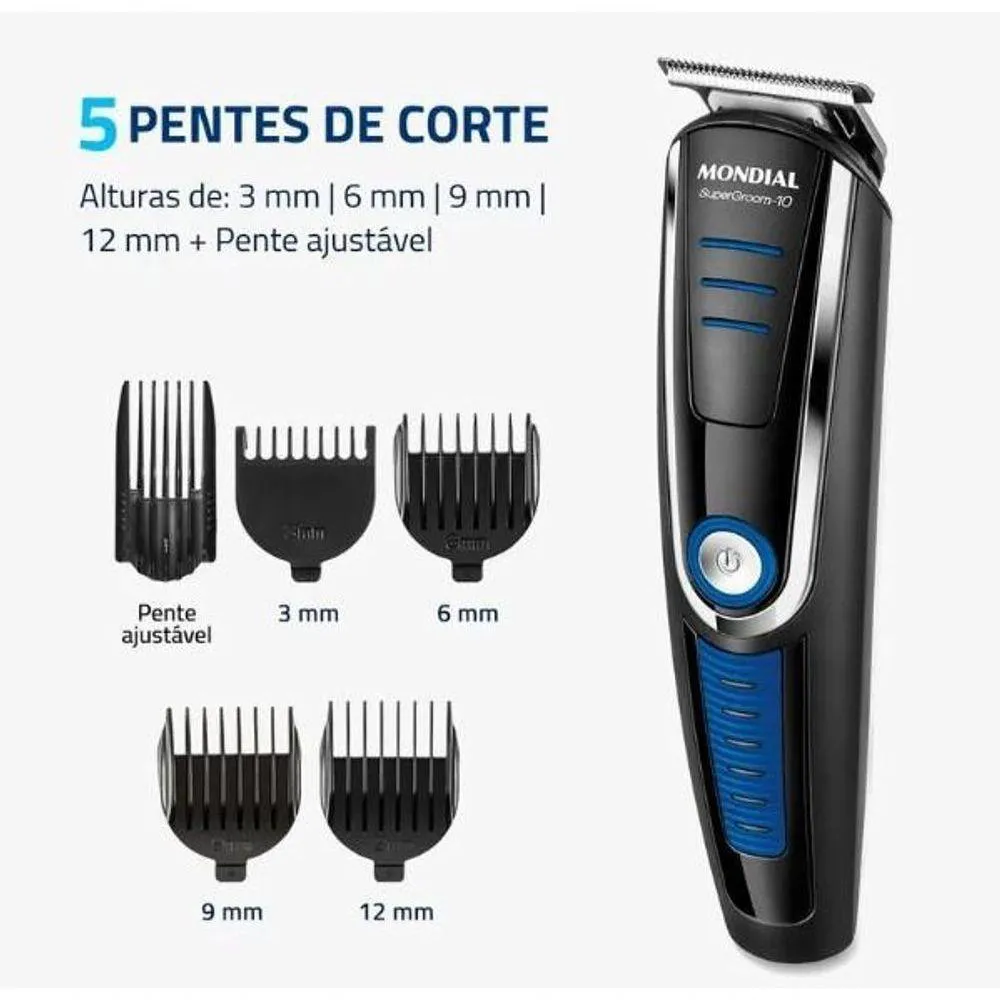 Aparador De Pelos Mondial Super Groom 10 BG-03 Preto/azul Bivolt
