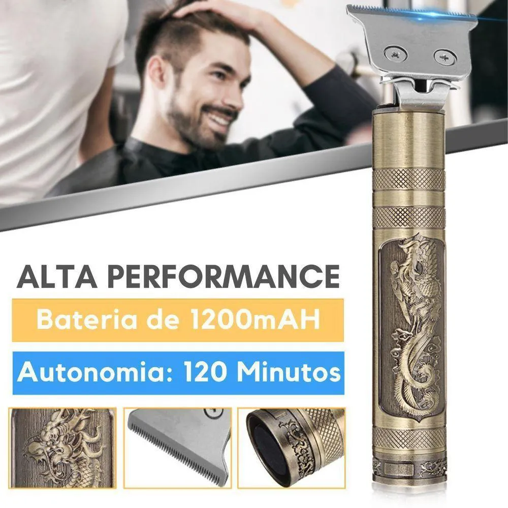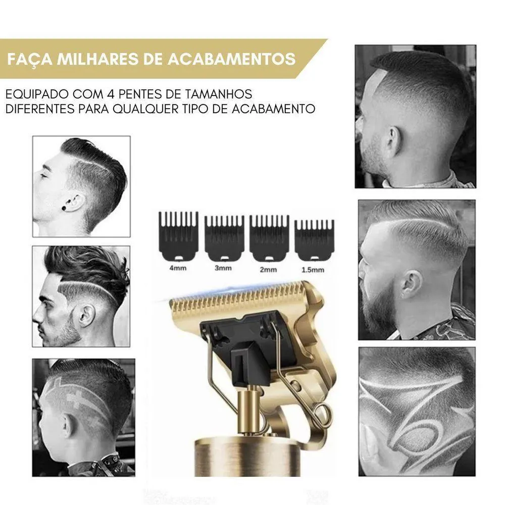 Conheça a máquina de corte detalhe barba dragão dourada o mais novo lançamento que está revolucionando a maneira que enxergamos corte de cabelo. É um incrível aparador de cabelo e barba, sem fio e recarregável, com uma bateria de que pode durar até 120 minutos de uso contínuo. Aparador externo profissional equipado com 3 pentes (1 mm, 2 mm, 3 mm) para cumprir exigências diferentes do comprimento. Você pode facilmente ajustar o pente para a altura certa e cortar o penteado que você deseja com extrema facilidade, pois é anatômica e antiaderente, garantindo total controle na hora do corte.
