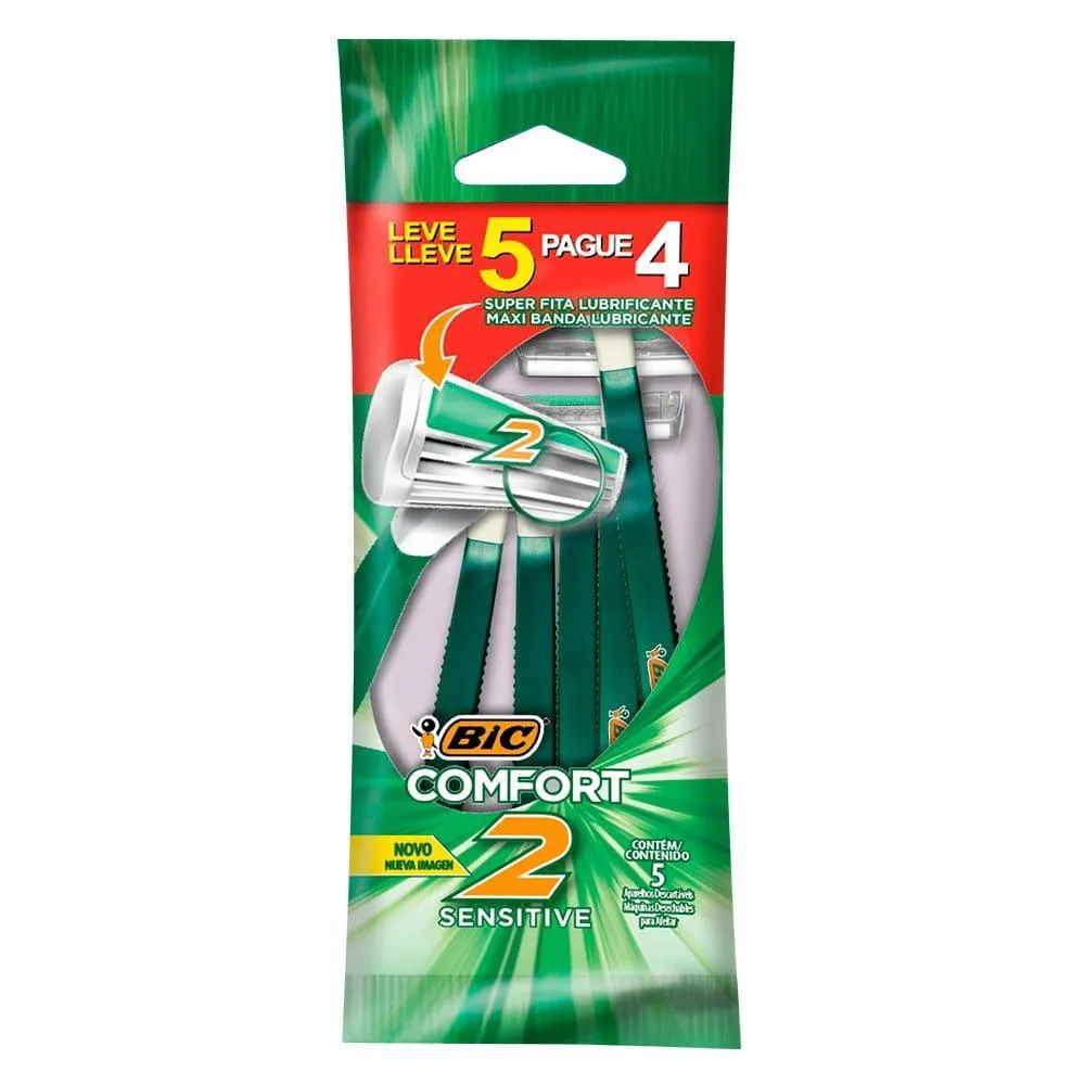 Aparelho Bic Comfort 2 Sensitive Embalagem com 5 unidades