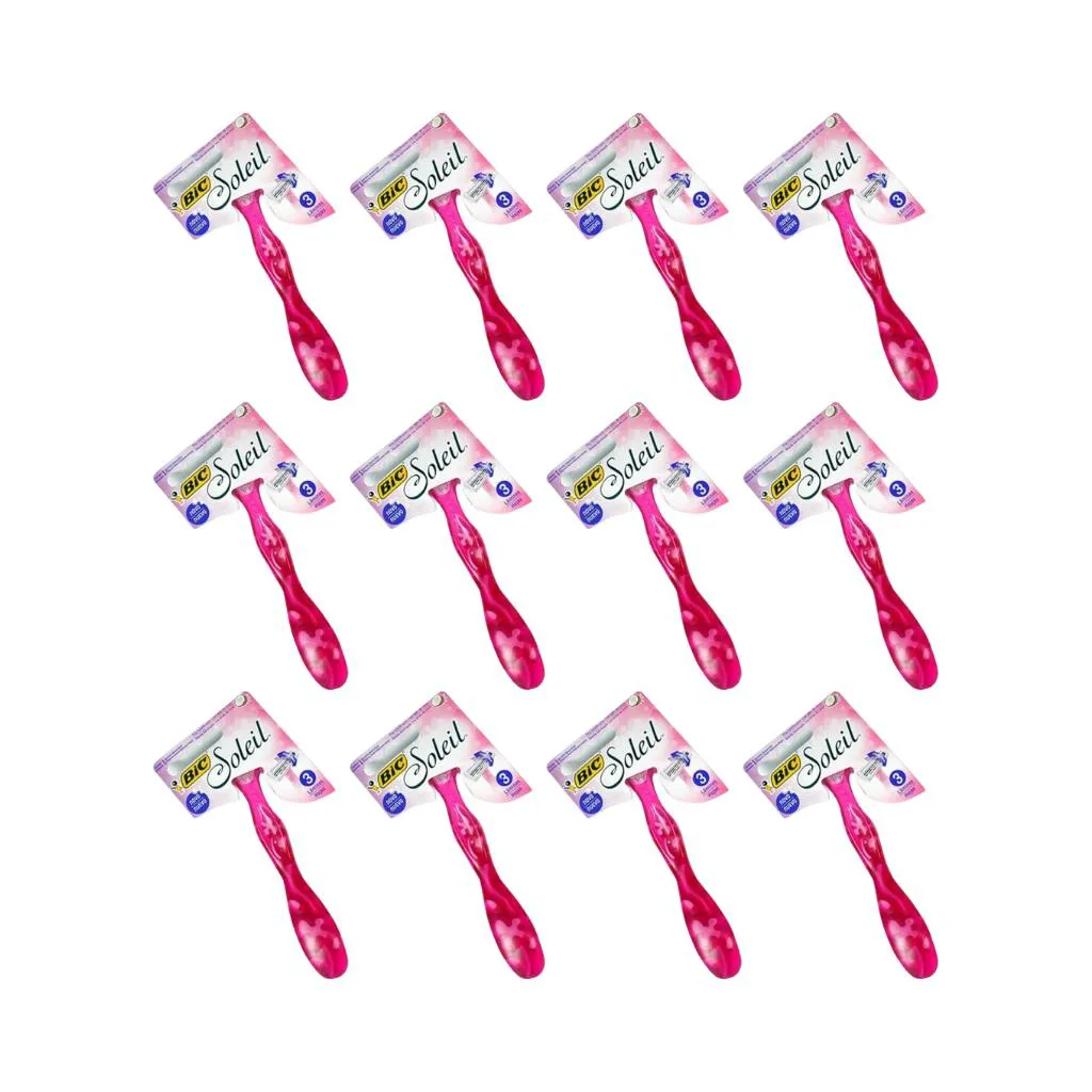 APARELHO DE BARBEAR BIC SOLEIL COM 1 ROSA - KIT C/ 12UN Descrição O Aparelho de Barbear Bic Soleil, na cor rosa, oferece uma experiência suave e eficaz de barbear para mulheres. Projetado com lâminas de alta qualidade, este aparelho proporciona um barbear rente e confortável, deixando a pele macia e sem irritações. Seu cabo ergonômico proporciona uma aderência firme e confortável durante o uso, facilitando o manuseio e garantindo uma depilação precisa. Este aparelho de barbear vem com uma cabeça móvel que se adapta aos contornos do corpo, permitindo um deslize suave e preciso em todas as áreas. Além disso, possui uma fita lubrificante enriquecida com aloe vera e vitamina e, que proporciona hidratação e proteção à pele durante o barbear. Com o Aparelho de Barbear Bic Soleil, você obtém resultados impecáveis com conforto e praticidade. Modo de Uso Molhe a área a ser depilada com água morna para amolecer os pelos. Aplique um gel ou espuma de barbear na área. Segure o Aparelho de Barbear Bic Soleil com firmeza e deslize suavemente sobre a pele no sentido do crescimento do pelo. Enxágue frequentemente a lâmina com água para remover os pelos e o produto de barbear acumulados. Após o uso, enxágue o aparelho completamente e deixe-o secar ao ar. Substitua a lâmina conforme necessário para garantir um barbear eficaz e seguro.