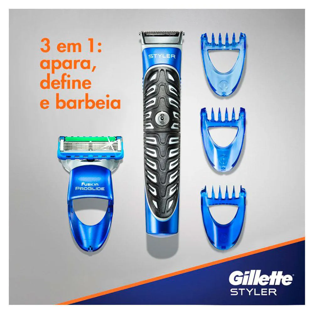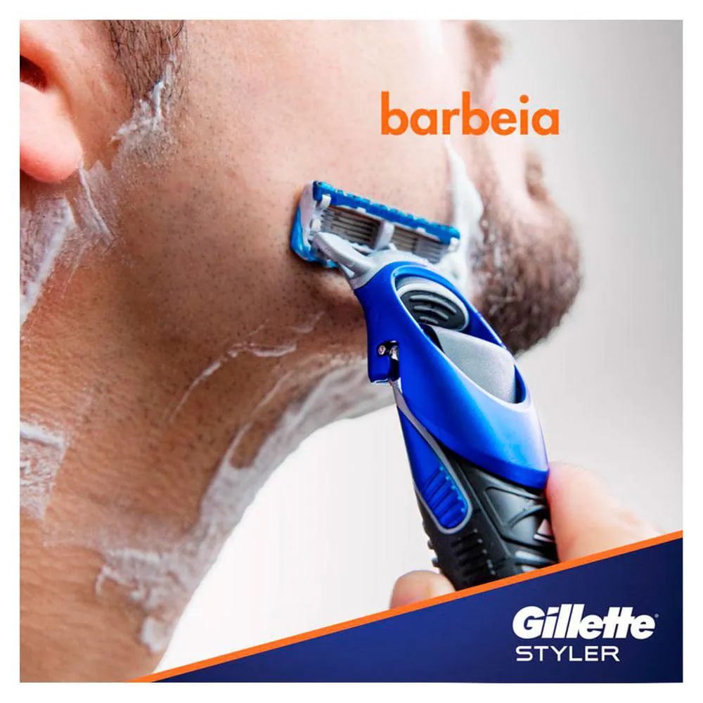 O Gillette STYLER multifuncional apara de maneira uniforme, proporciona um barbear rente e um acabamento com precisão. O Styler conta com tudo do que você precisa para qualquer estilo de barba. O Gillette STYLER multifuncional combina as lâminas do Fusion ProGlide com um aparador desenvolvido pela Braun, para aparar de maneira uniforme, com um barbear rente e um acabamento preciso. Essa ferramenta multifuncional é à prova d’água e pode ser usada com segurança no chuveiro, além de funcionar com todos os refis de lâminas do Gillette Fusion, para que você possa manter seu estilo de barbear predileto com uma única ferramenta.