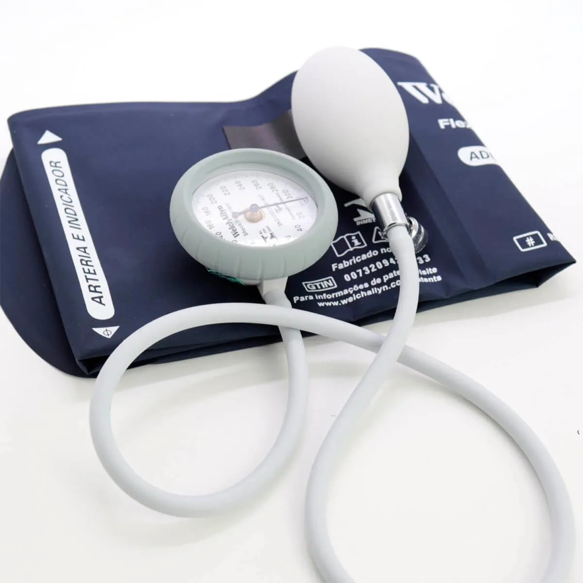 O Aparelho de Pressão Durashock DS44-11-BR da Welch Allyn representa uma revolução na esfigmomanometria aneróide. Desenvolvido com a exclusiva tecnologia DuraShock, este é o primeiro aparelho projetado para suportar a rotina intensa de hospitais e clínicas. Seu design inovador sem engrenagens permite que ele resista a quedas de até 76 cm sobre superfícies duras sem quebrar e, o mais importante, sem perder a calibração. Este equipamento possui o selo do INMETRO impresso tanto na braçadeira quanto no manômetro, garantindo total conformidade para uso profissional e institucional. Além da durabilidade extrema, o DS44 oferece um custo-benefício superior ao longo de sua vida útil, eliminando a necessidade de trocas e recalibragens constantes que aparelhos comuns exigem após pequenos impactos. A braçadeira conta com o sistema FlexiPort, que facilita a troca entre diferentes tamanhos e garante uma conexão hermética e segura.Benefícios e Diferenciais