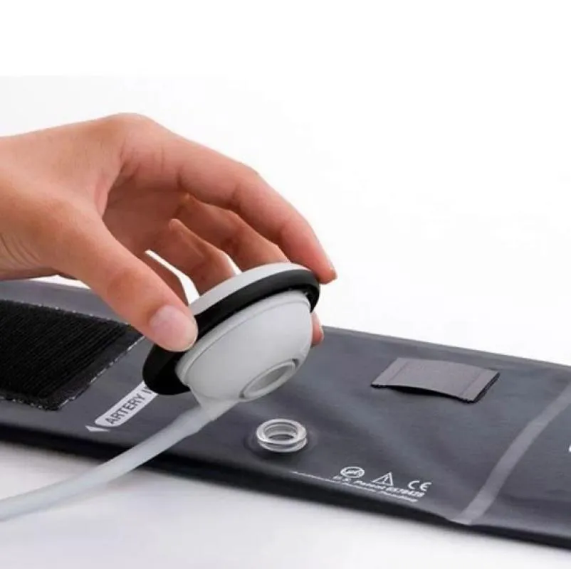 A conexão por FlexiPort permite a troca da braçadeira de maneira fácil. Com 8 tamanhos disponíveis (somente adulto incluso) que são identificados pelas cores. As bordas sem dobras diminuem os riscos de cortes e arranhões, dando mais conforto ao paciente.
