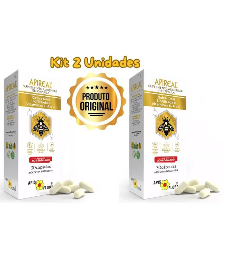 Apireal Geleia Real Liofilizada 30 cápsulas - Kit C/ 2 Caixas