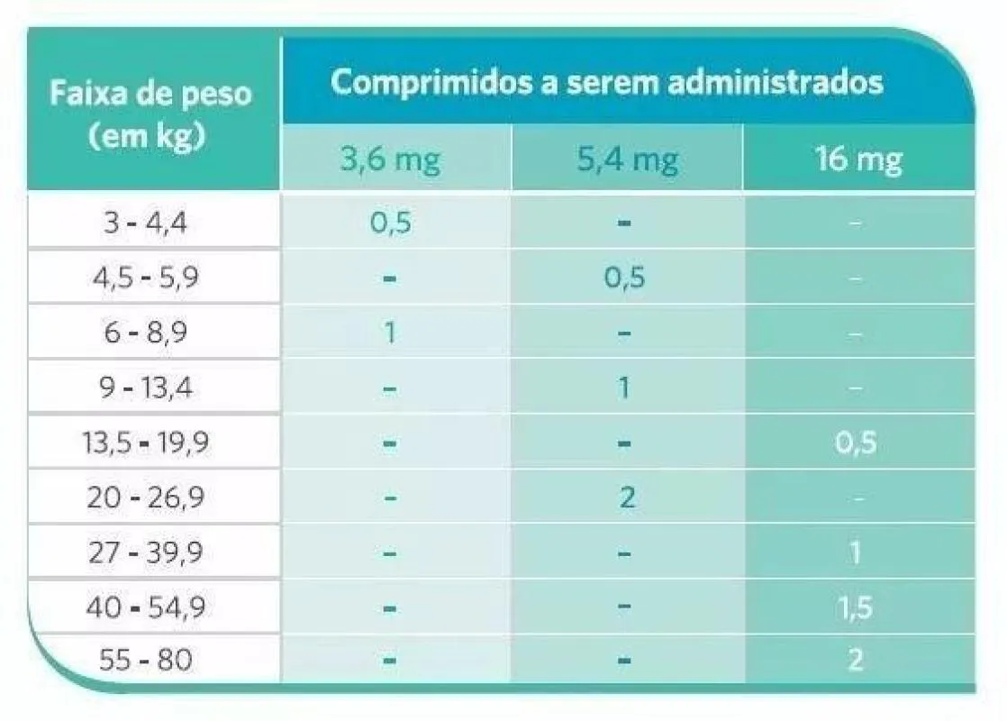 Para a terapia de manutenção (após 14 dias iniciais), a mesma dose deve ser administrada (0,4 a 0,6 mg/kg, uma vez ao dia. A necessidade da terapia de manutenção de longa duração deve ser baseada numa avaliação de risco-benefício individual, realizada pelo médico veterinário responsável.
