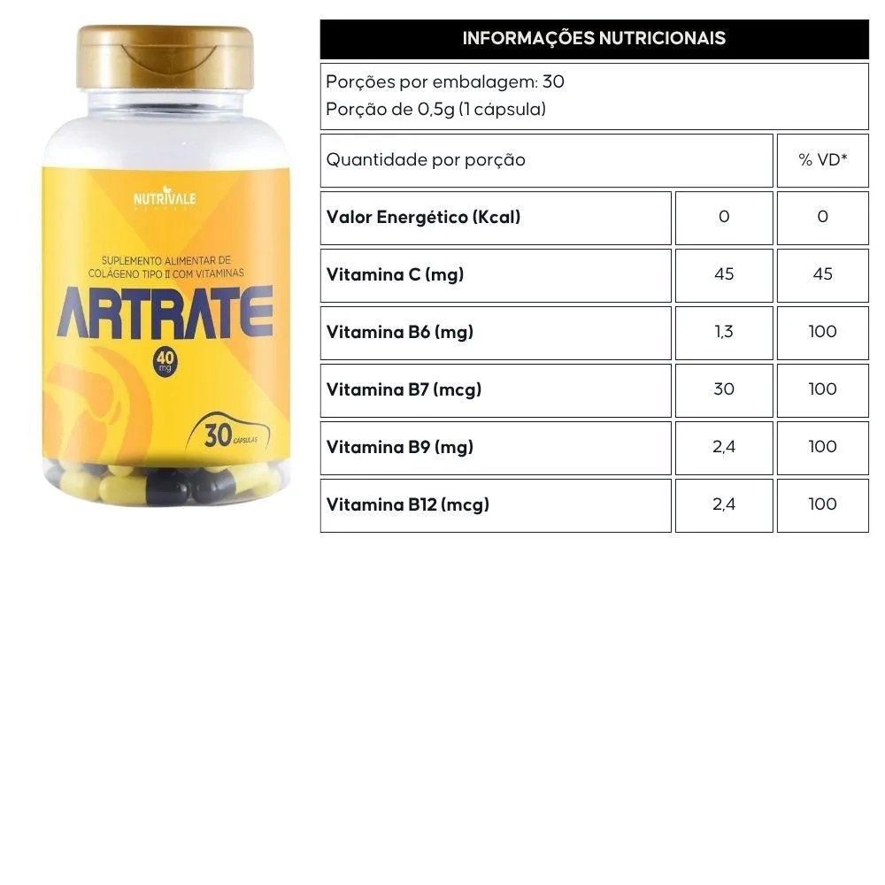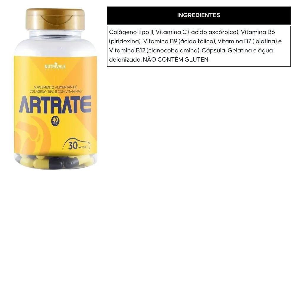 Artrate (Colageno Tipo 2 com Vitaminas) 30 Capsulas - Nutrivale