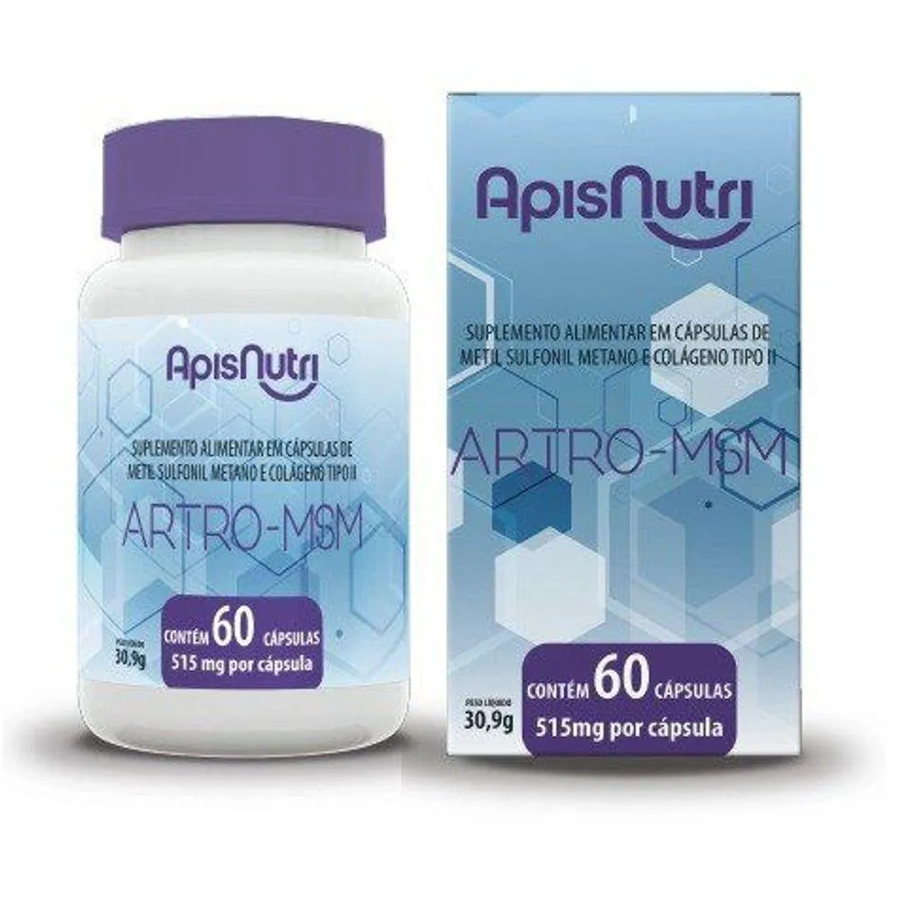 ARTRO - MSM 515mg (60 caps) - APISNUTRI O Artro MSM 515 mg da Apisnutri possui colágeno tipo II, um importante elemento para a formação das cartilagens, principalmente as que revestem as extremidades dos ossos, e MSM, uma substância sulfurada, ou seja, que possui átomos de enxofre em sua composição, que ajuda na formação da Elastina e da Condroitina, que também favorecem a recuperação articular. BENEFÍCIOS - Importante na construção de aminoácidos metionina e cisteína;- Contém 40 mg de colágeno tipo II por porção;- Anti-inflamatório;- Ajuda a manter a saúde dos cabelos, pele e unha; Embalagem disponível: frasco contendo 60 cápsulas.